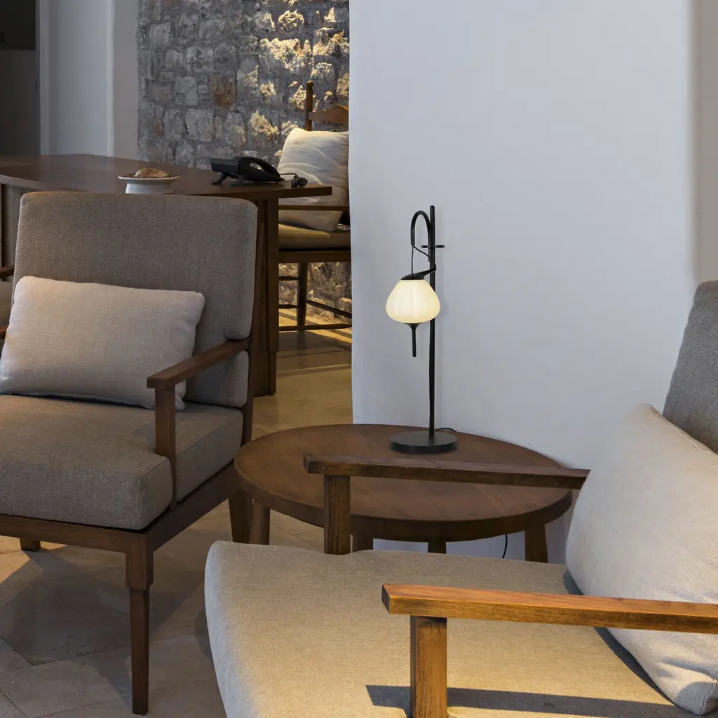 From VONN's Lecce Series, the VAT6221BL Integrated LED Table Lamp is a modern 20-inch fixture made from aluminum, iron, and glass, and an Integrated LED Shade. The shade consists of a Frosted Glass Sphere in the shape of a teardrop. Emitting a soft white ambient light at 3000 Kelvin, it offers a touch-base dimming functionality. With 241 Lumens brightness, an energy-efficient power consumption of 5 Watts, and CRI 90, this table lamp combines style and efficiency for versatile and customizable illumination.