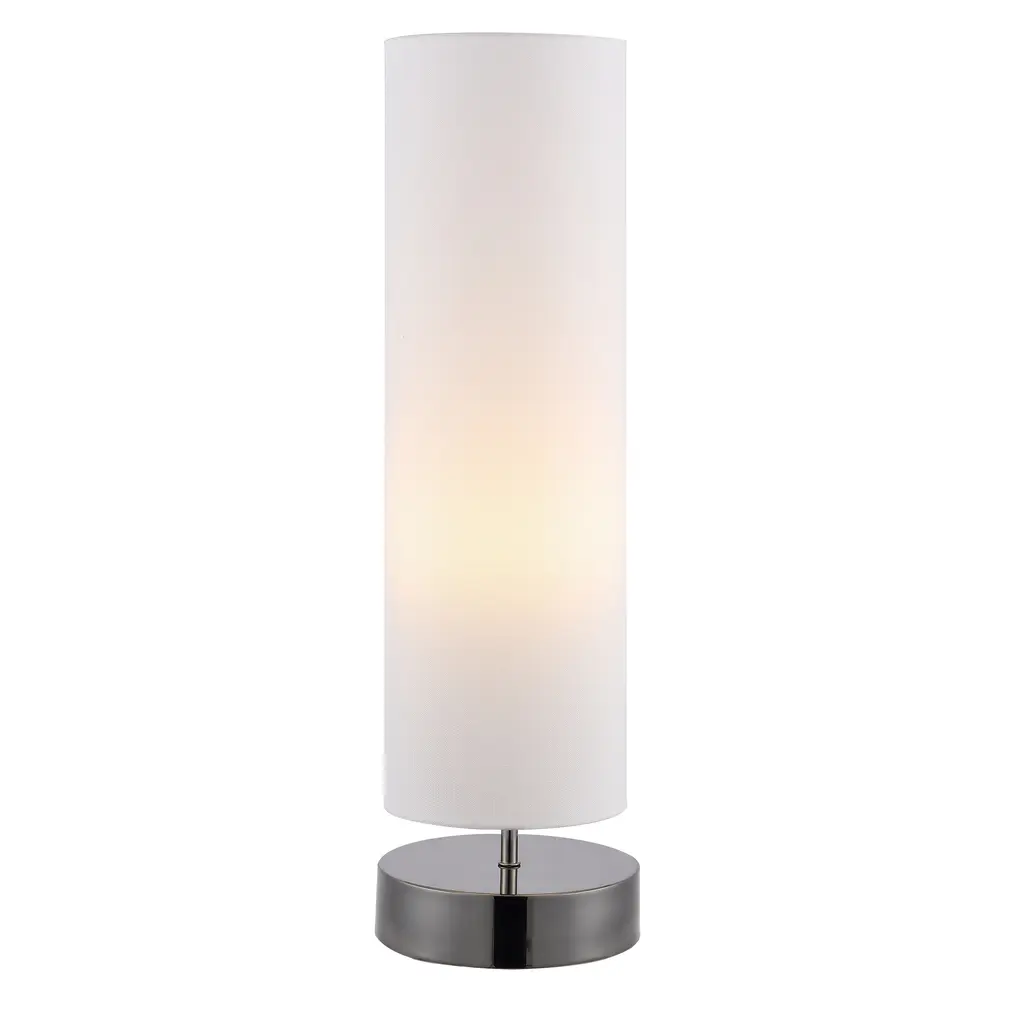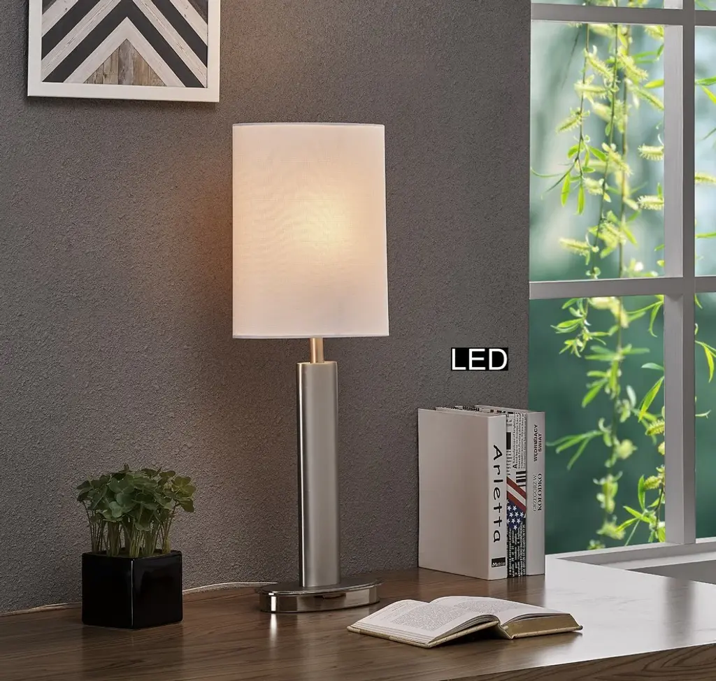 With LED functionality, Touch dimming capability, and sophisticated styling, "Catriona" from Artiva USA is the best-equipped LED Touch Table lamp to brighten up any living space in your home or office. Its Simple and Modern Slim design, large Oval shade, and Modern Satin Nickel finish allow "Catriona" to have a prominent presence in any setting. This Touch Table lamp is perfect addition to any home, office or any smaller room where space is an issue. The stylish simple modern slim design is sure to compliment a variety of decors and Energy Saving. 1000 Lumens(75W replacement) uses only 8W of electricity. Never have to scramble for the Switch again. The Catriona Touch lamp can be turn on and off with a simple Touch(metal area)Exclusive LED Dimmable true 360-degree view 8W bulb included. Use 10 times less energy then regular bulbs.Super bright LED, 1000 lumens used only 8W of electricityCompare to 75W lamp, "Catriona" lamp will save you over $16 each year of your electricity bill(based on 6-hrs per day usage and 11 cents per kilowatt)European slim oval design with Off-white Linen shade (overall size:9.5"x5.5"x27"H)Never have to scramble for the switch again. "Catriona" Touch lamp can be turn-on and off with a simple of a touch(any metal area) low, medium ,High.Beautiful Satin Nickel Finish.