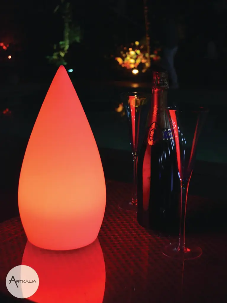 Featuring a shade in the shape of a droplet, the Artkalia Droppia Cordless LED Table Lamp is attractive lighting option. The lamp is battery-powered and its shade is waterproof, which allows for easy the outdoorss. Place this lamp on a small table in the bedroom or out on the patio for a unique way to light up the home.Droplet-shaped table lampWaterproof plastic shadeBulb type: LEDOperates on rechargeable batteriesCan be used with remote control (sold separately)