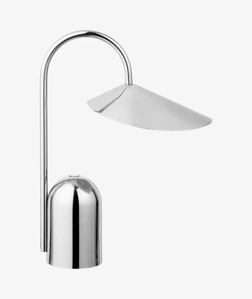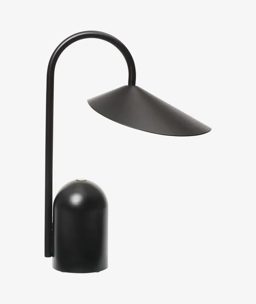 The Arum Portable Lamp is a versatile and mobile lighting solution. This petite, portable LED lamp is rechargeable via USB-C, allowing you to create a cozy setting anywhere you go. While it echoes the shape of the Arum Table Lamp, this portable version is crafted entirely from powder-coated iron and aluminum, offering durability and a sleek finish. Its design maintains the collection's signature elegance and balance, with its petal-shaped shade appearing to float from the stem-like rod. The lamp features a three-step touch dimmer, providing adjustable ambient lighting to suit your needs.