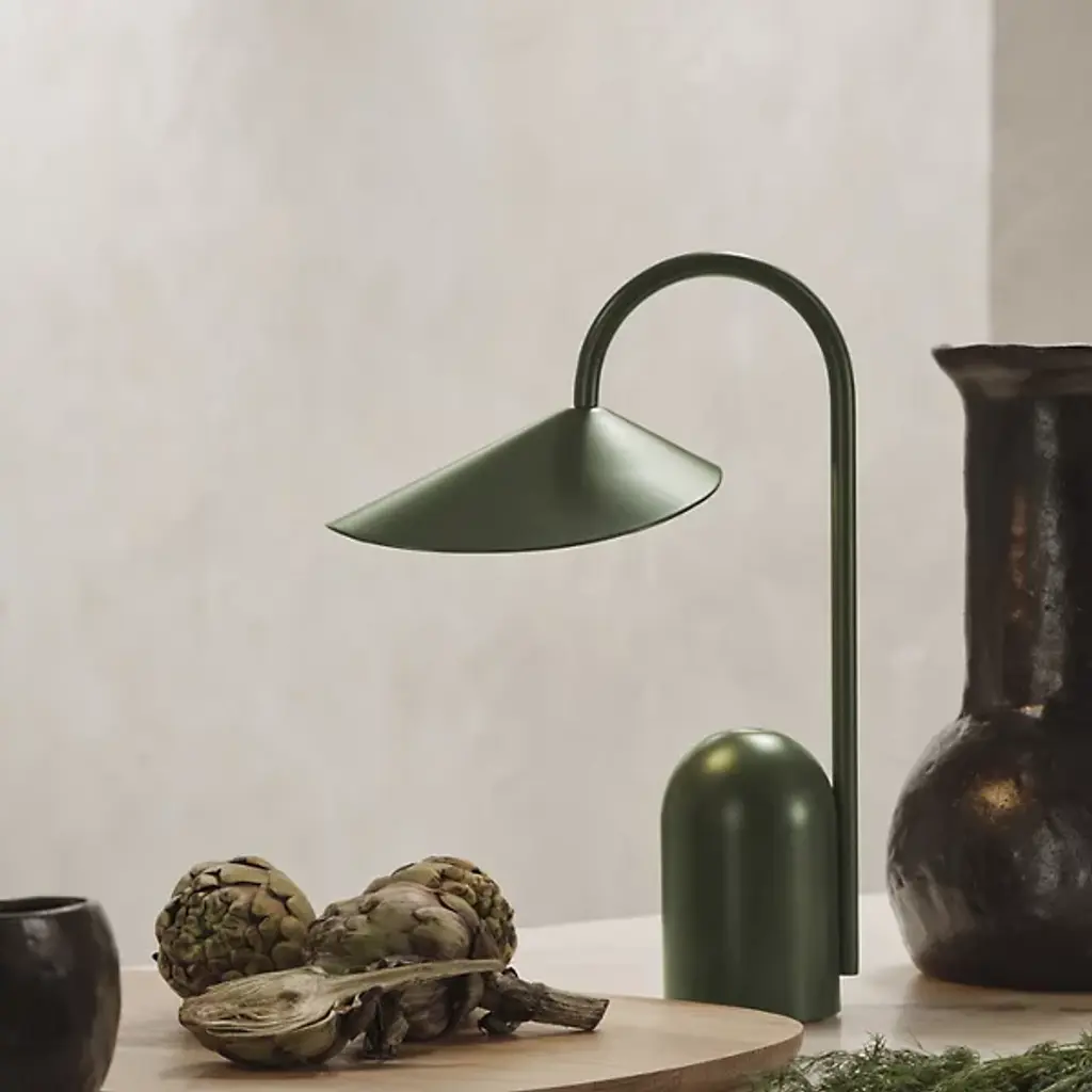 The Arum Rechargeable LED Table Lamp from Ferm Living is a compact, mobile lighting solution designed for convenience and style. Rechargeable via USB-C, this petite LED lamp lets you create a cozy ambiance wherever you go. Crafted from durable powder-coated iron and aluminum, it echoes the elegant shape of this lamp, with a petal-like shade that appears to float from the slender stem. Its three-step touch dimmer offers adjustable ambient lighting, making it as functional as it is stylish.