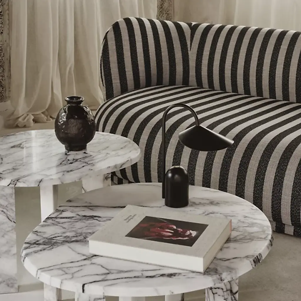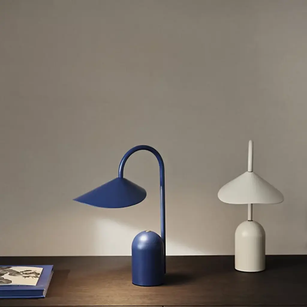 The Arum Rechargeable LED Table Lamp from Ferm Living is a compact, mobile lighting solution designed for convenience and style. Rechargeable via USB-C, this petite LED lamp lets you create a cozy ambiance wherever you go. Crafted from durable powder-coated iron and aluminum, it echoes the elegant shape of this lamp, with a petal-like shade that appears to float from the slender stem. Its three-step touch dimmer offers adjustable ambient lighting, making it as functional as it is stylish.
