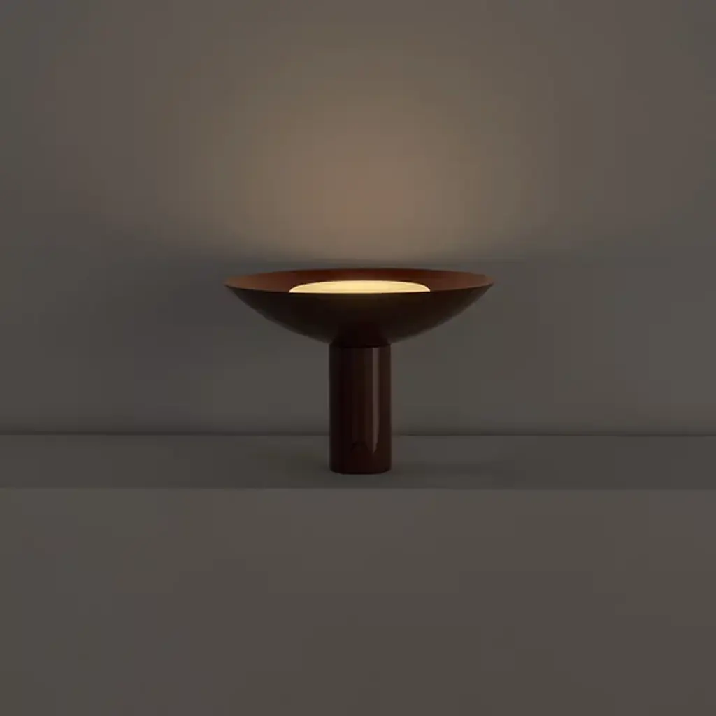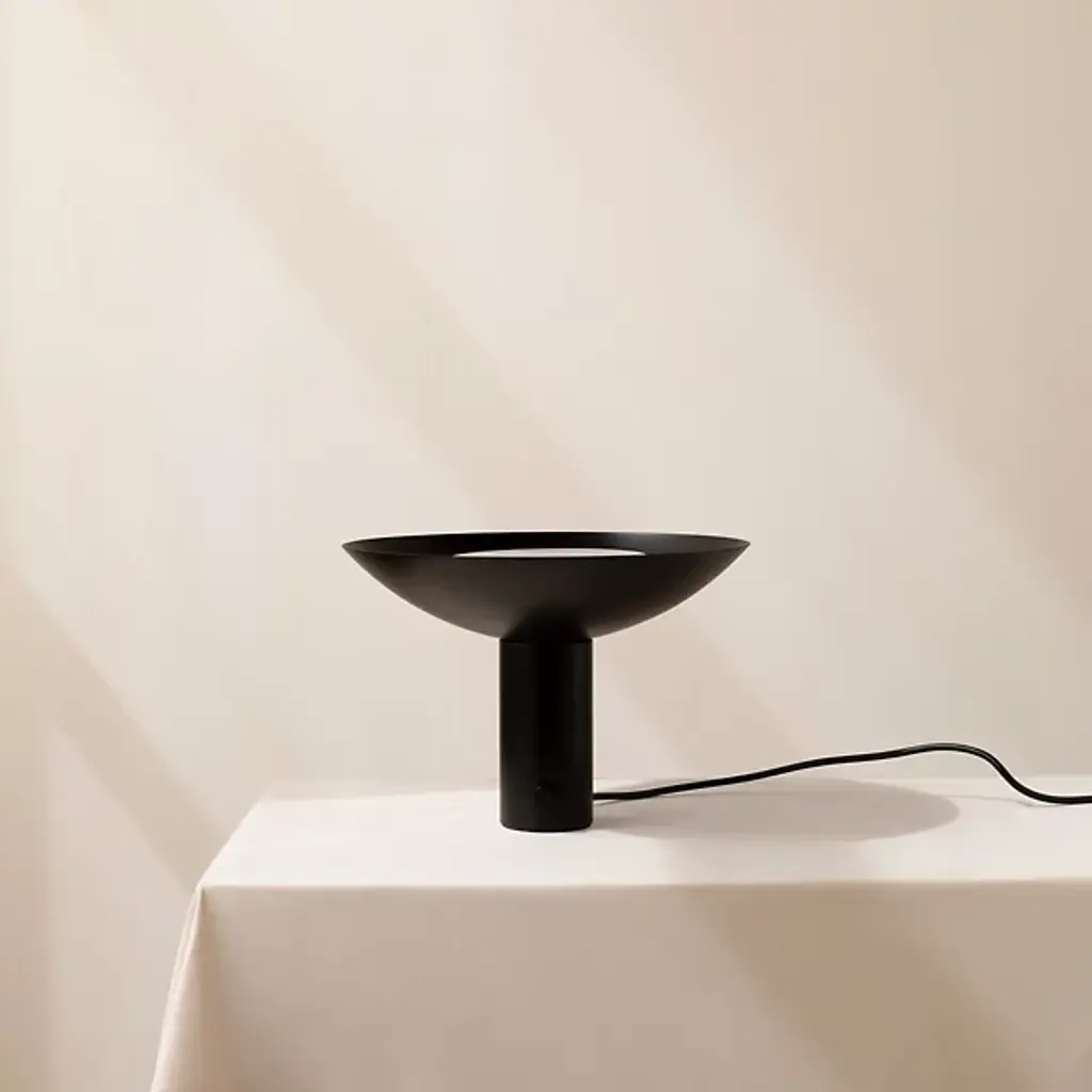 Originating from “a weird, wok-like light on a swivel at a garage sale in Maine,” the Arundel Up Light Table Lamp from In Common With is a stunning addition to indoor surfaces. Its sleek design makes it an attractive choice for any central table or space, crafted with a machined metal base and shade. The design is practical and sculptural, optimized to provide ample light while doubling as a functional art piece. With a cylinder base and body supporting damp-listed lamping inside an inverted disc-shaped shade flipped like a bowl, it cleverly combines Contemporary simplicity and Artisanal Modern individuality and style, mellowing bright glare into a mellow glow that radiates upward.