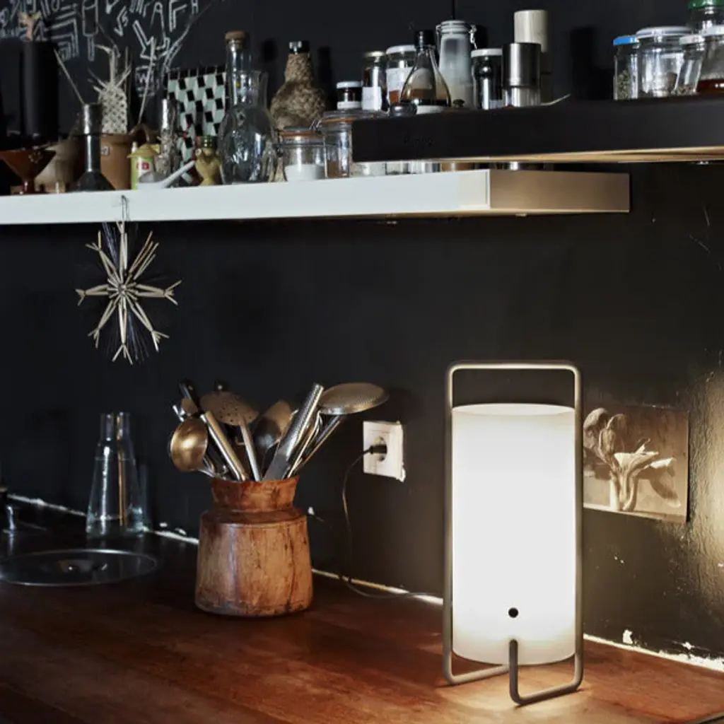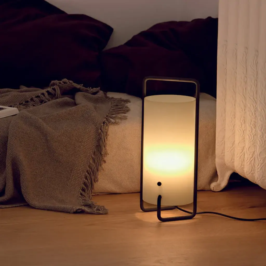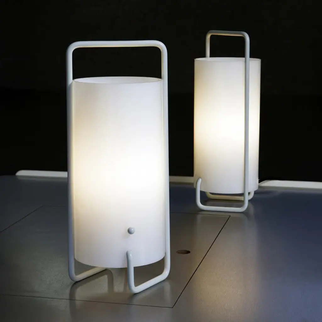 Illuminate your space in style with the ASA Table Lamp from Santa & Cole. Designed by Miguel Mila, this portable lantern features a sleek white methacrylate shade and metal structure. The timeless white or black finish adds a touch of elegance, while the metal "button" functions as a chic on/off switch. Upgrade your lighting game with this classic and sophisticated lamp. Highlights