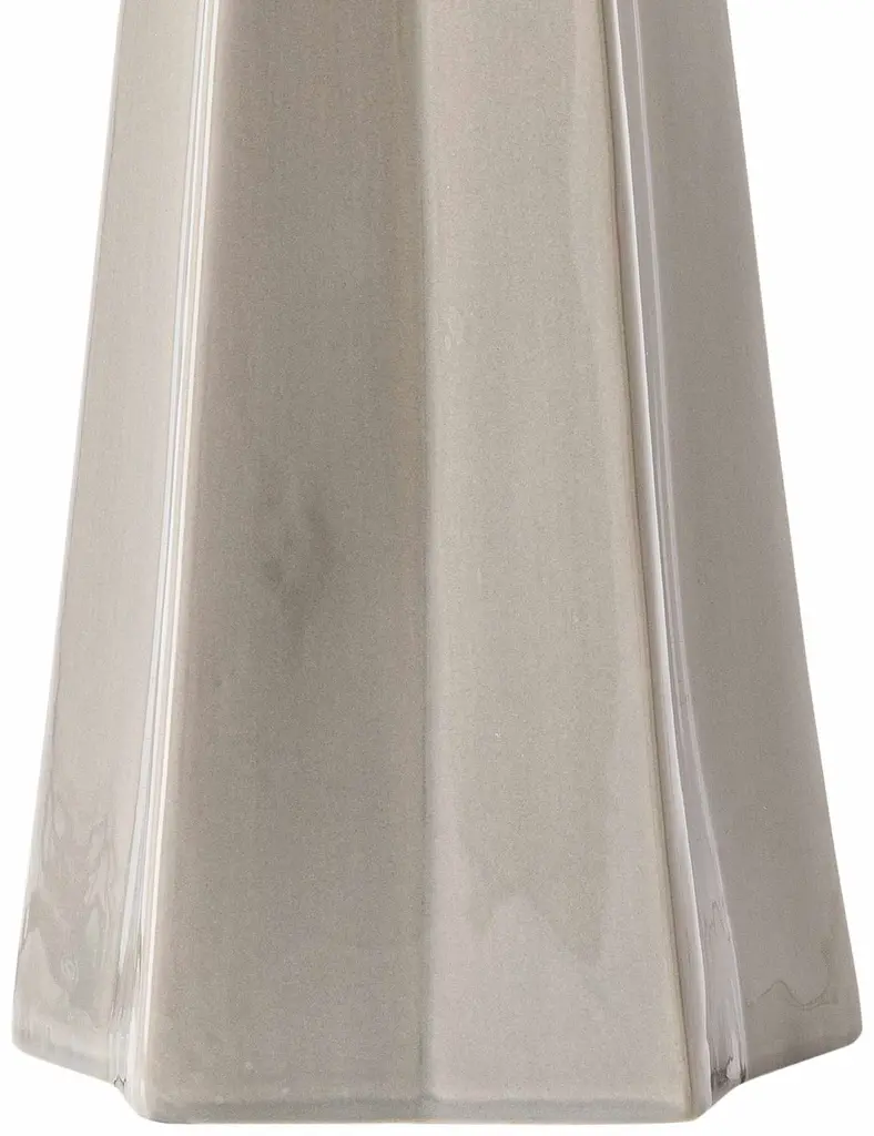 Collection: Asalatganj Colors: Gray, Beige, White, Silver Gray, Metallic - Nickel, Black Material: Body: Ceramic,Shade (Outside): Linen,Shade (Inside): Polyester,Finial: Iron Styles: Contemporary Made In: China Lighting Type: Accent Table Lighting Shade Material: LinenPolyester Shade Color: WhiteBeige Cord Length: 6' Switch Type: Rotary Number of Bulbs: 1 Socket Type: E-26 Bulb Wattage: 100W