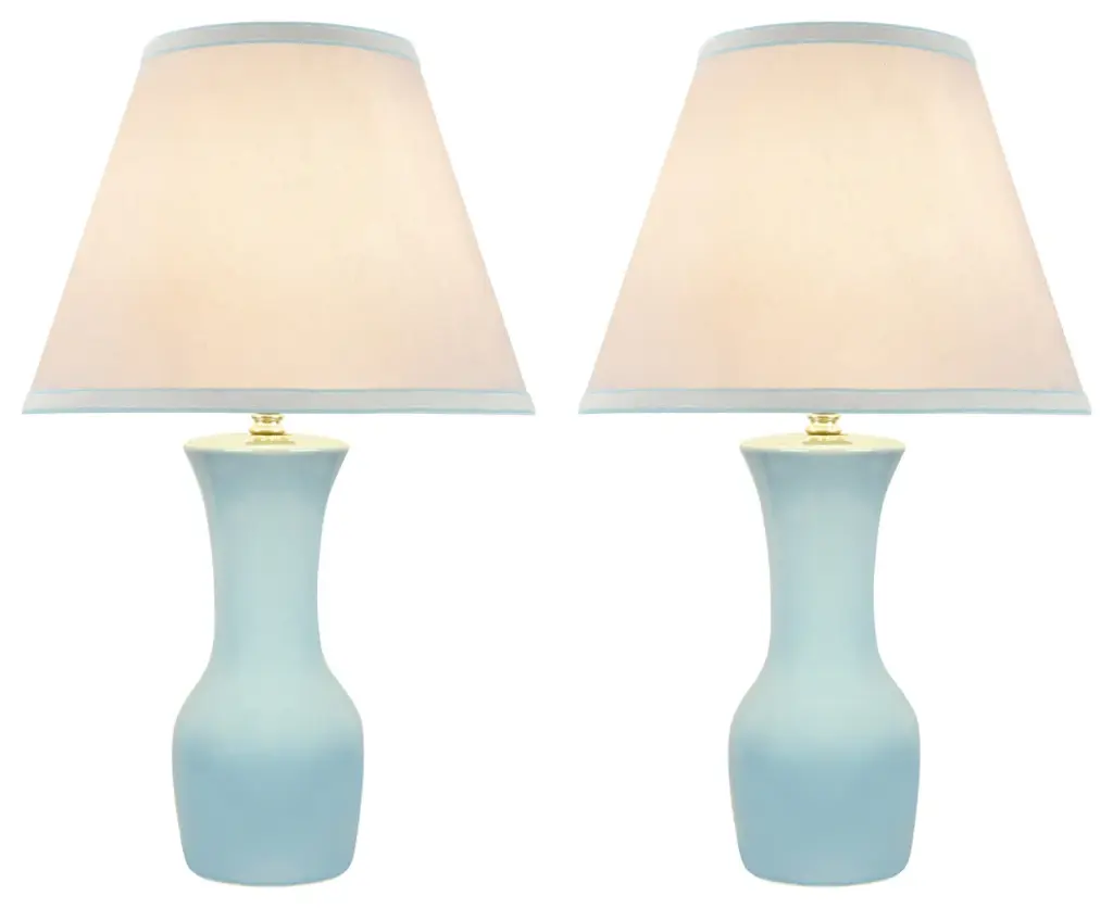 Aspen Creative is dedicated to offering a wide assortment of attractive and well-priced portable lamps, kitchen pendants, vanity wall fixtures, outdoor lighting fixtures, lamp shades, and lamp accessories. We have in-house designers that follow current trends and develop cool new products to meet those trends.Product Detail:• Ceramic table lamp in light blue glaze• Lamp shade size - 12.5" wide x 9.5" height• ON/OFF switch, Uses a medium base light bulb, 100 watt max, Light bulb not included• UL listed for indoor, dry location.