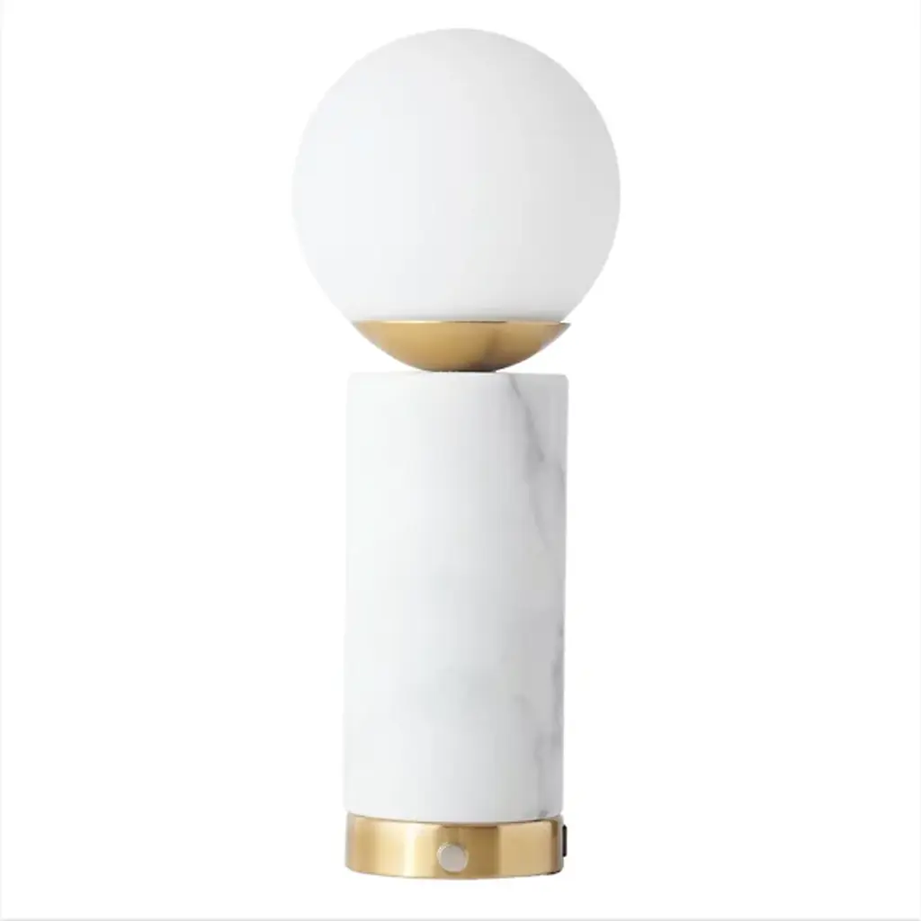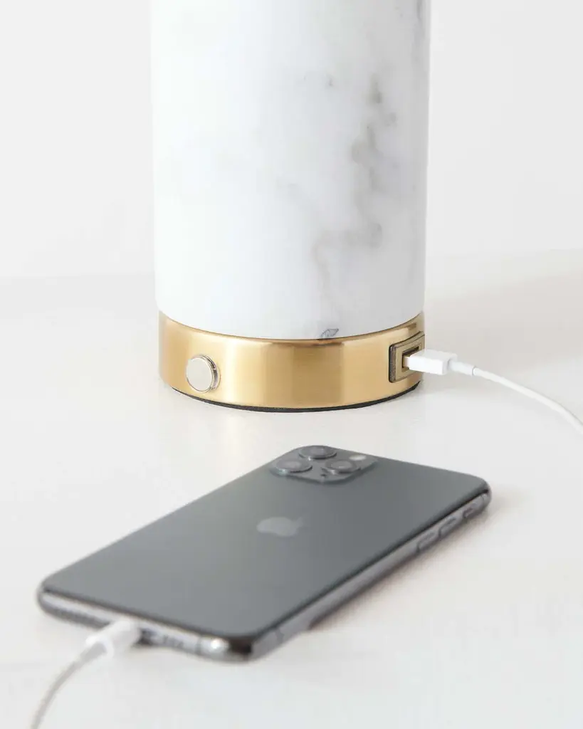 Defining a classic and modern style, the Aspen marble base table lamp will elevate your bedroom to the next level. This marble and gold lamp checks all the boxes. It’s solid, versatile, and of course, beautiful. Choose between three dimming options for perfect bedtime relaxation and keep your mobile device charged and ready for when you wake up with its USB port. The Aspen’s glazed glass globe radiates a serene glow over golden accents, emitting warm light in every direction.