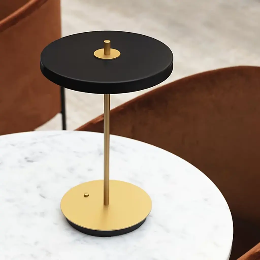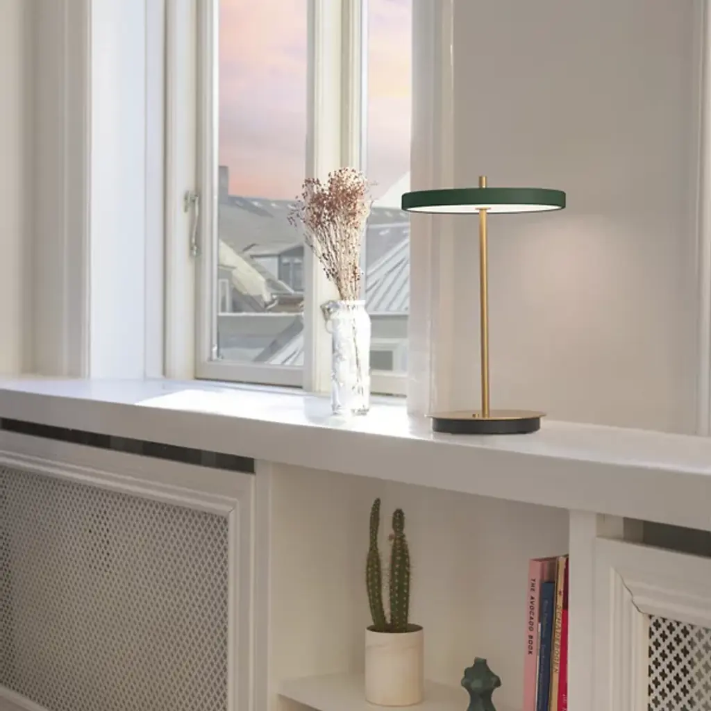 The Asteria Move LED Rechargeable Table Lamp by UMAGE brilliantly combines style and functionality. It is designed by Soren Ravn Christensen. Blending Scandinavian artistry with contemporary flair, this table lamp is a statement of sophistication. Crafted from steel and aluminum, Asteria embraces a streamlined aesthetic that integrates into diverse interior styles. The lamp features a disc-shaped framework housing high-quality acrylic emanating an integrated LED glow, exuding a sense of beauty and durability.