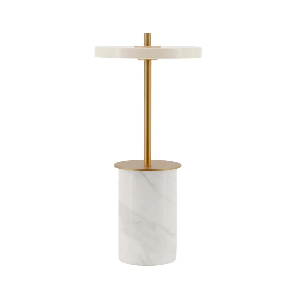 Elevate your space with the Asteria Move Mini Portable Table Lamp from Umage, a refined blend of sleek design and timeless elegance. Its compact form features an interchangeable solid marble base, adding classic luxury to any setting. With four adjustable light levels controlled by a simple tap, you can effortlessly tailor the ambiance to suit intimate dinners or relaxed evenings. More than just a lamp, it serves as a sculptural accent that enhances shelves or cabinets with subtle sophistication. Perfect for creating warm, inviting atmospheres with style and grace. Highlights