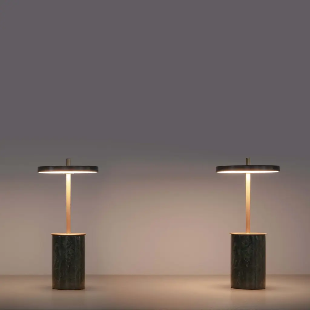 Elevate your space with the Asteria Move Mini Portable Table Lamp from Umage, a refined blend of sleek design and timeless elegance. Its compact form features an interchangeable solid marble base, adding classic luxury to any setting. With four adjustable light levels controlled by a simple tap, you can effortlessly tailor the ambiance to suit intimate dinners or relaxed evenings. More than just a lamp, it serves as a sculptural accent that enhances shelves or cabinets with subtle sophistication. Perfect for creating warm, inviting atmospheres with style and grace. Highlights