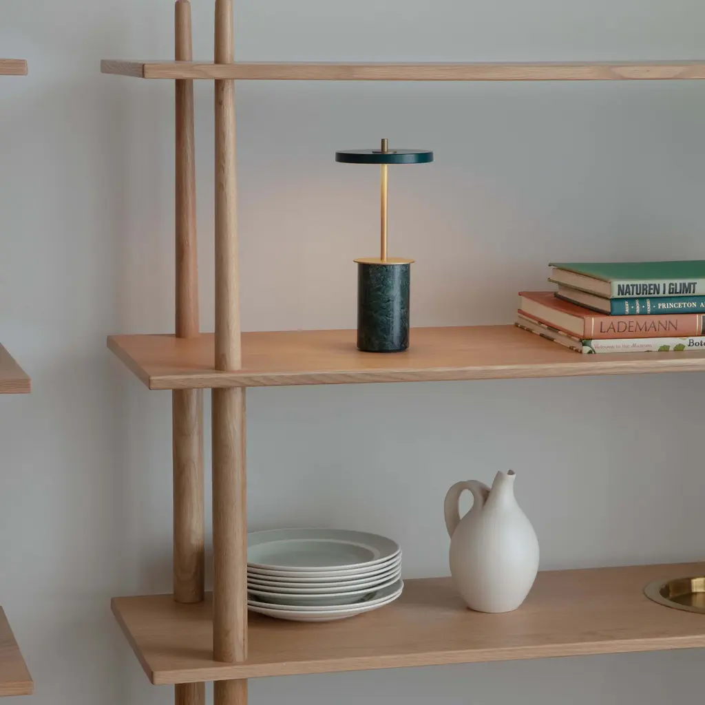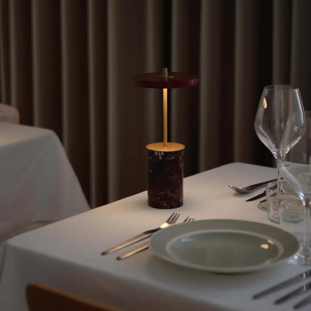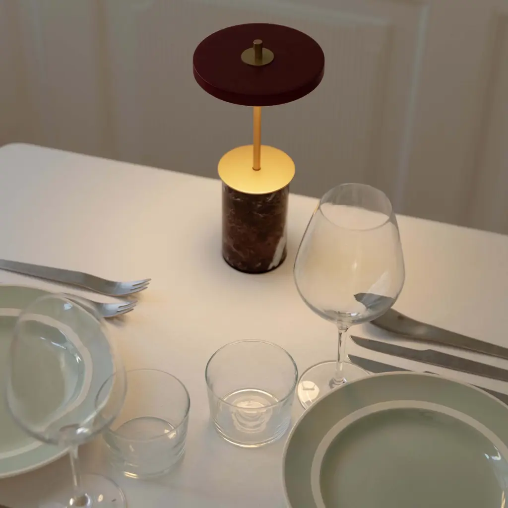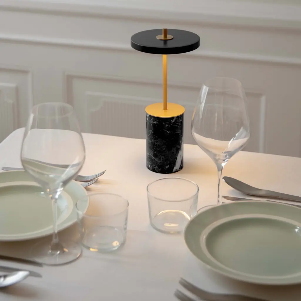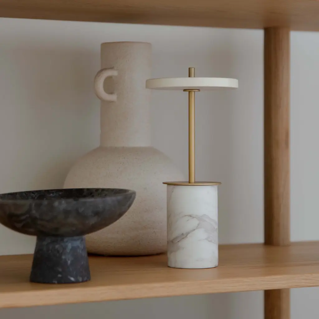 Elevate your space with the Asteria Move Mini Portable Table Lamp from Umage, a refined blend of sleek design and timeless elegance. Its compact form features an interchangeable solid marble base, adding classic luxury to any setting. With four adjustable light levels controlled by a simple tap, you can effortlessly tailor the ambiance to suit intimate dinners or relaxed evenings. More than just a lamp, it serves as a sculptural accent that enhances shelves or cabinets with subtle sophistication. Perfect for creating warm, inviting atmospheres with style and grace. Highlights