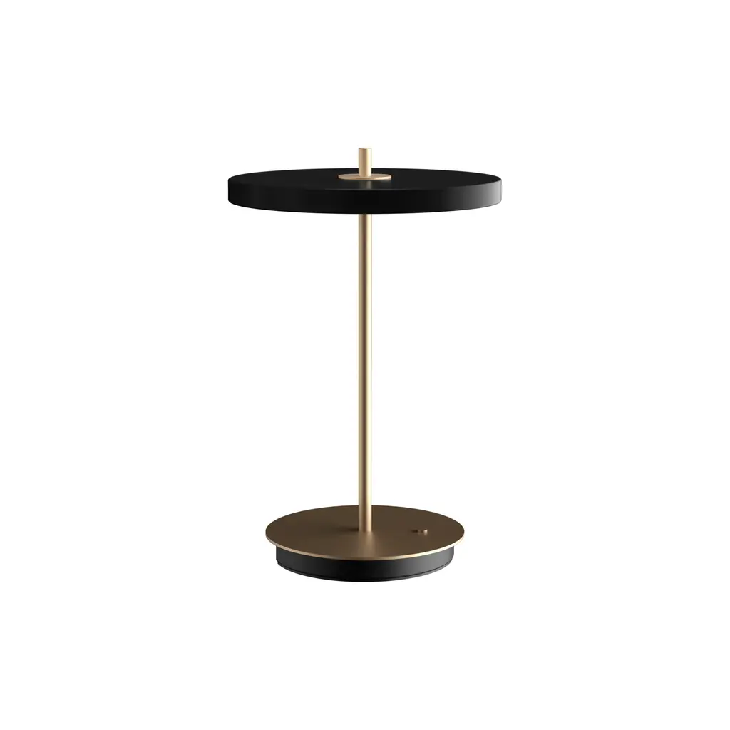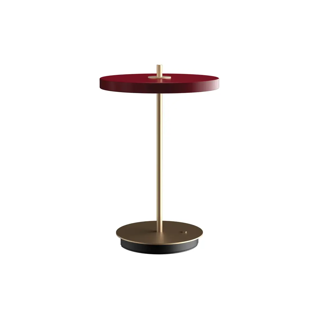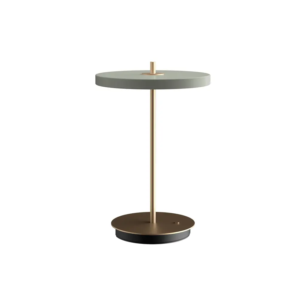 The cordless Asteria Move Portable Lamp features a built-in custom LED light with a soft white diffuser, ensuring glare-free illumination. Crafted from aluminum with a brass stem, the lamp has four adjustable light intensity levels to suit various needs. Its battery lasts up to 35 hours and charges easily via any Qi charging unit or the included USB cable. Available in 11 colors, the Asteria Move's compact size and portability provide versatile lighting for any location.