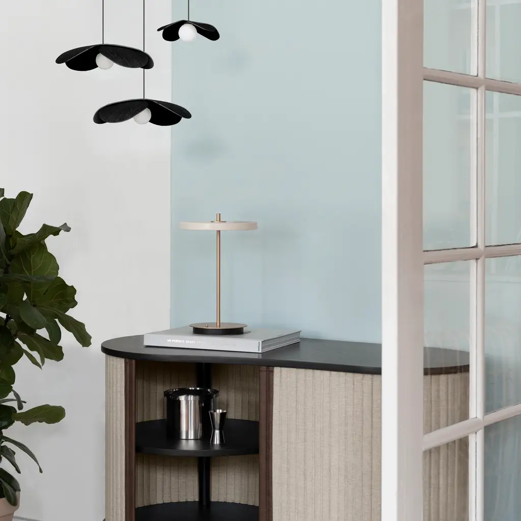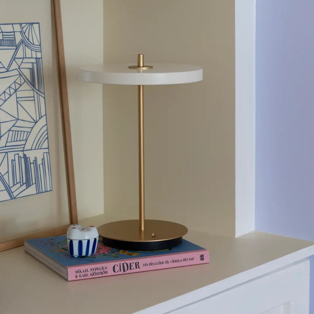 The Asteria Move Portable Table Lamp from Umage offers cordless convenience with a sleek design that enhances any space. Its four adjustable light intensity levels provide customizable illumination, controlled easily via a button on the base. With up to 35 hours of battery life, it ensures long-lasting use. Recharging is simple and versatile—just place it on any Qi-compatible charging pad or use the included USB cable. Perfect for flexible lighting needs, Asteria Move combines functionality and modern style in a portable form. Highlights