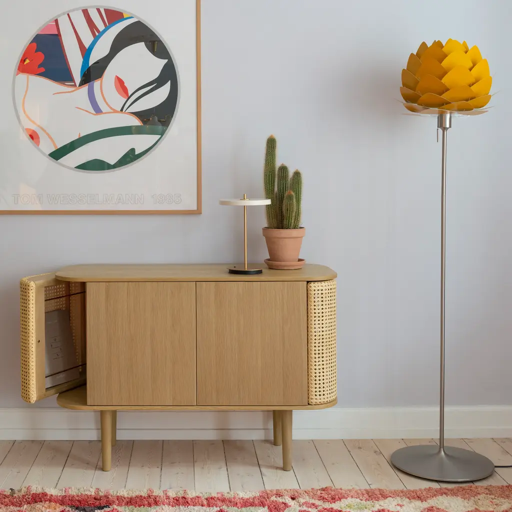 The Asteria Move Portable Table Lamp from Umage offers cordless convenience with a sleek design that enhances any space. Its four adjustable light intensity levels provide customizable illumination, controlled easily via a button on the base. With up to 35 hours of battery life, it ensures long-lasting use. Recharging is simple and versatile—just place it on any Qi-compatible charging pad or use the included USB cable. Perfect for flexible lighting needs, Asteria Move combines functionality and modern style in a portable form. Highlights