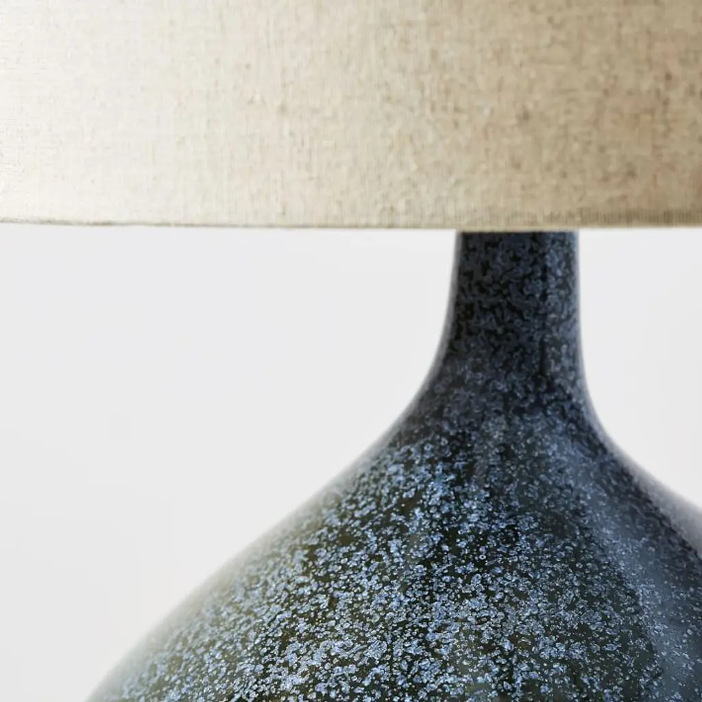 Fluid form inspired by Japanese pottery. Topped with a pure linen shade. Offers an ambient diffused light. Contract Grade, so you know it's built to last.