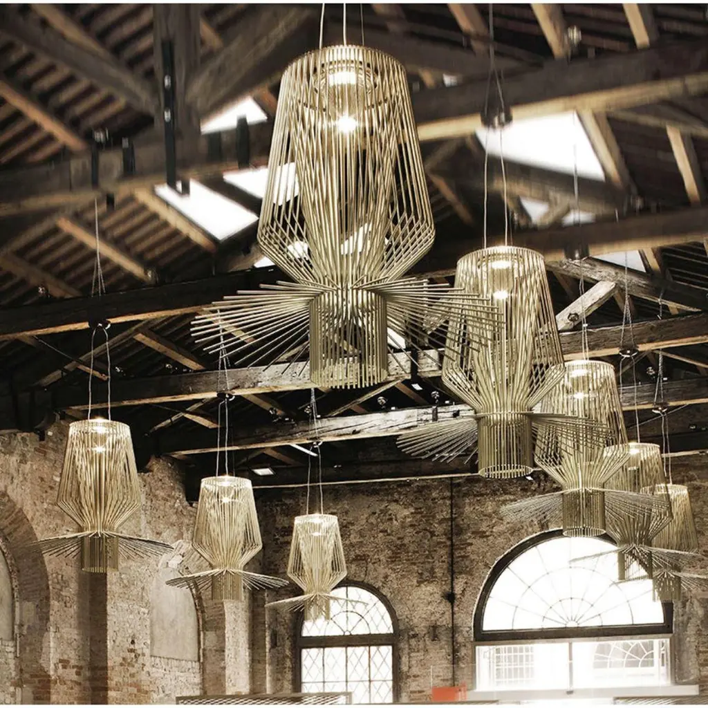 Atelier Oi ‘Allegro Assai’ Led Chandelier Lamp In Gold For Foscarini