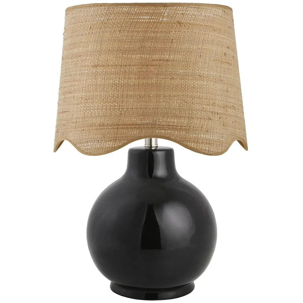 Collection: Atenxoxola Colors: Navy, Peach, Translucent Material: Body: Ceramic,Shade (Outside): Rattan,Shade (Inside): Metal Styles: Southwestern Made In: China Lighting Type: Accent Table Lighting Shade Material: RattanMetal Shade Color: WheatWheat Cord Length: 6' Switch Type: On/Off Number of Bulbs: 1 Socket Type: E-26 Bulb Wattage: 60W
