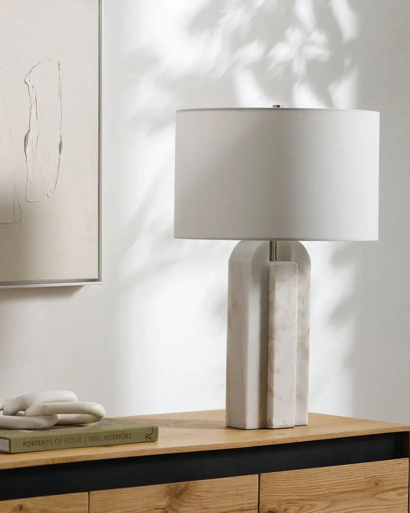 Experience the perfect blend of functional lighting and stunning design with our Accent Table Lamp. Inspired by Art Deco Modern aesthetics, this lamp features a sleek body that exudes sophistication and luxury. The outside shade is made of linen, diffusing soft light to create a warm and inviting ambiance, while the inside boasts a robust polyester construction for durability. Topped off with an iron finial that adds an elegant touch to its overall look. Standing at 26 inches tall, this lamp perfectly illuminates your desk or bedside table without overwhelming your space. Maintaining its beauty is simple - just wipe it clean with a dry cloth to keep it looking as stunning as ever. Note: Harsh cleaners should be avoided to preserve the finish.
