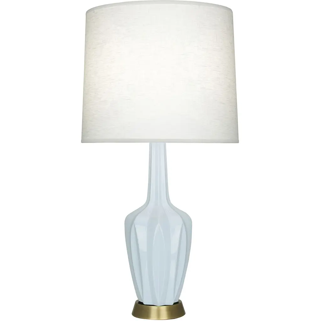 Add a cool, soothing presence to your living space with the Atlas Table Lamp by Robert Abbey. This classically-inspired table lamp features a smooth ceramic base with ribbed detailing for an added textural element. Steel accents add a welcomed contrast to the fixture’s low-luster body, while the rounded drum shade made of oyster linen creates a warm, ambient light by softly diffusing the glowing light within. This dimmable lamp will effortlessly complement a living room or bedroom.
