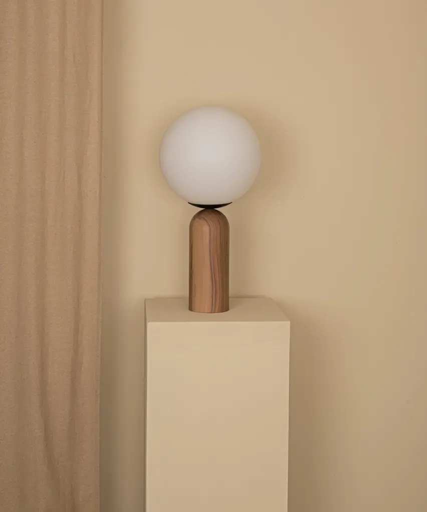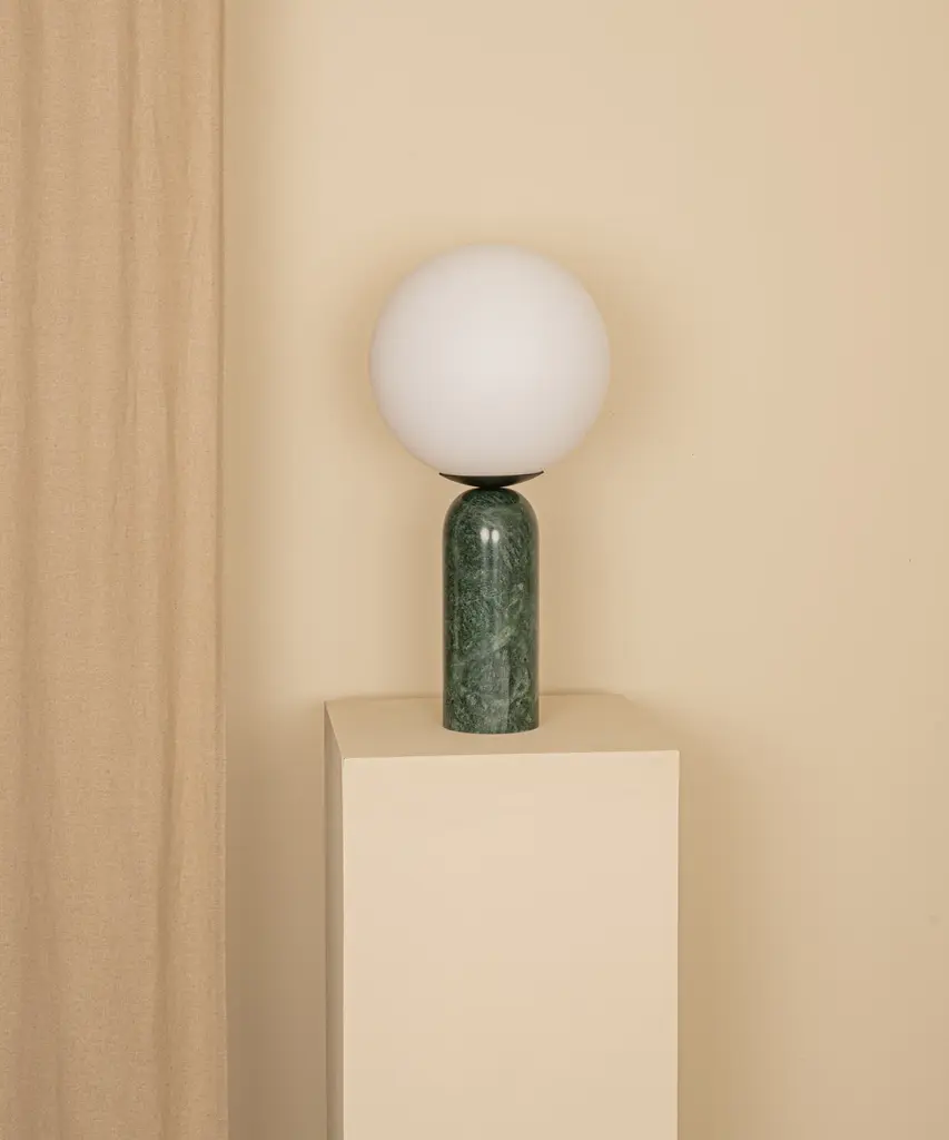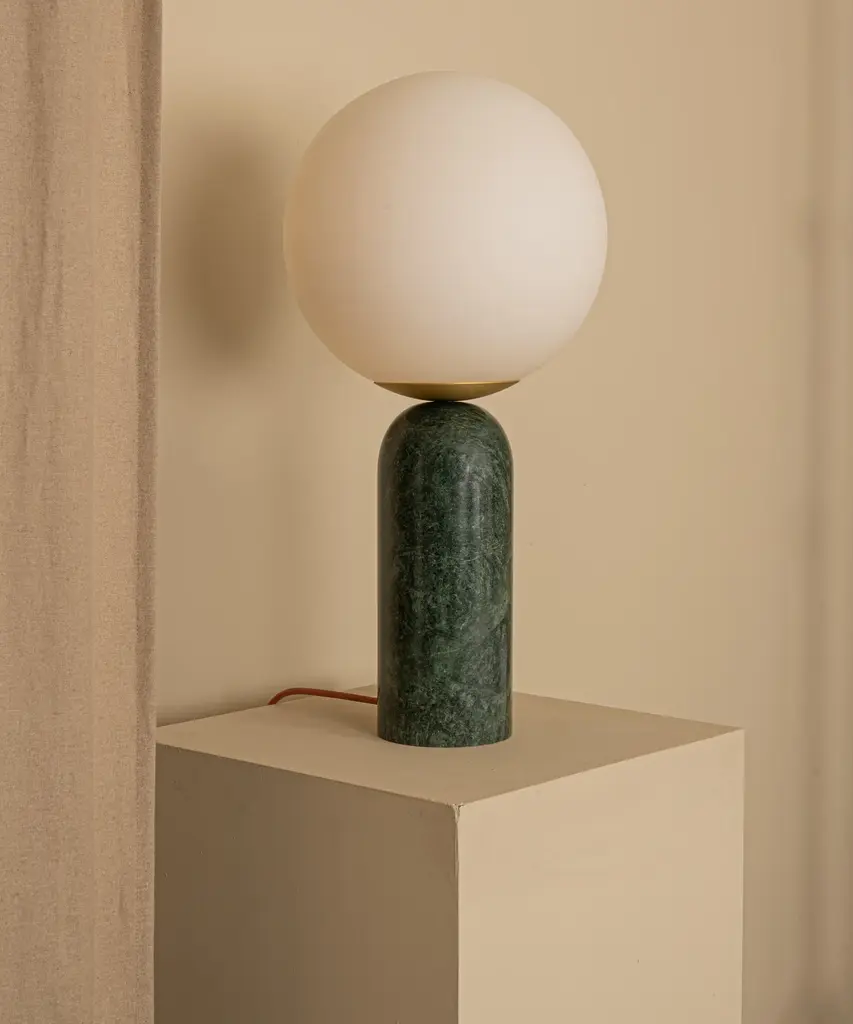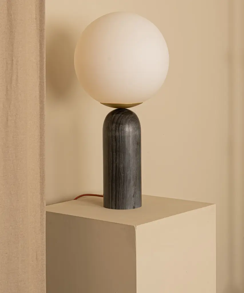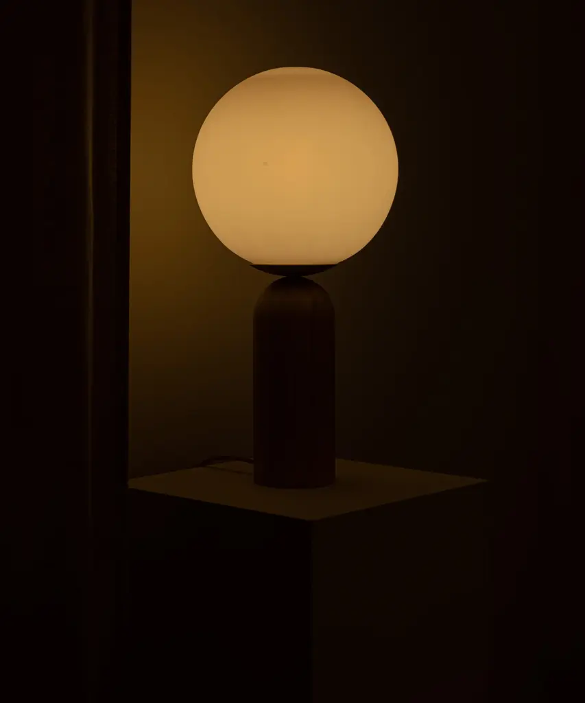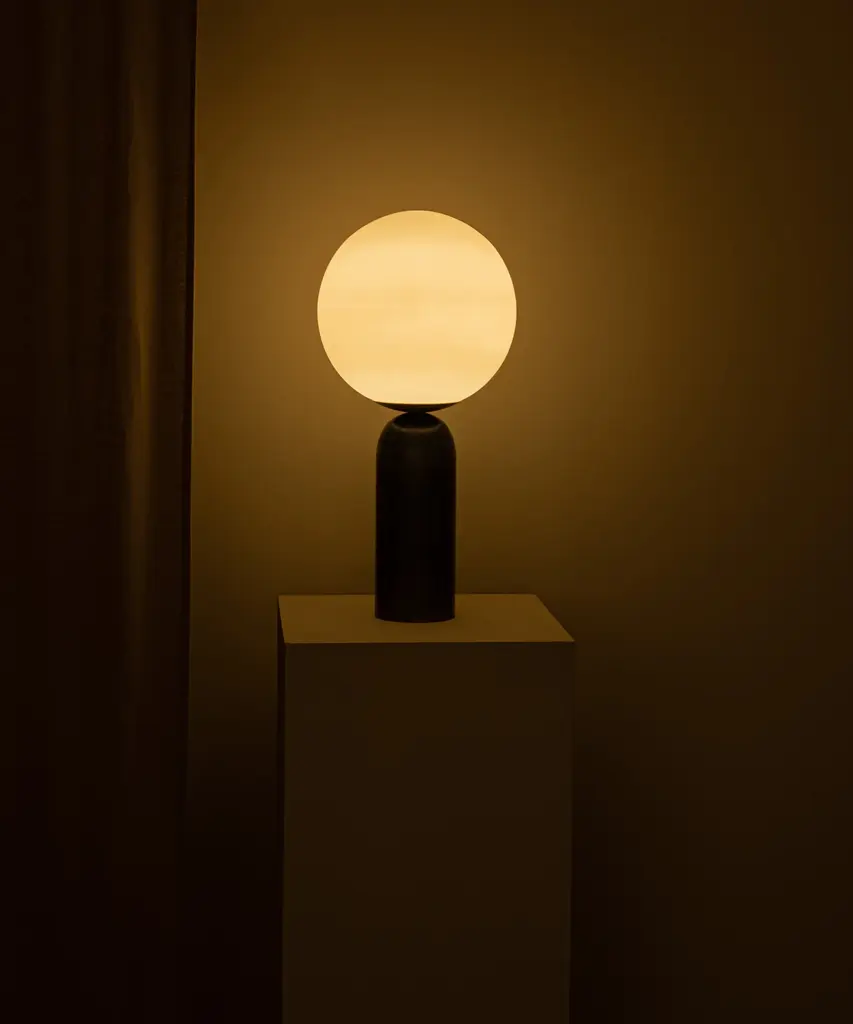 A modern representation of Greek mythology, the Atlas table lamp diffuses a beautiful light through its opal glass globe. The sphere sits on top of a minimally shaped base highlighted with a metal detail. Each Simone & Marcel lighting fixture is hand-made to order in the designers' studio located in rural Spain. Every product uses only materials and components sourced from local suppliers, all within a short drive of their workshop - an abandoned agricultural warehouse that the couple renovated themselves.