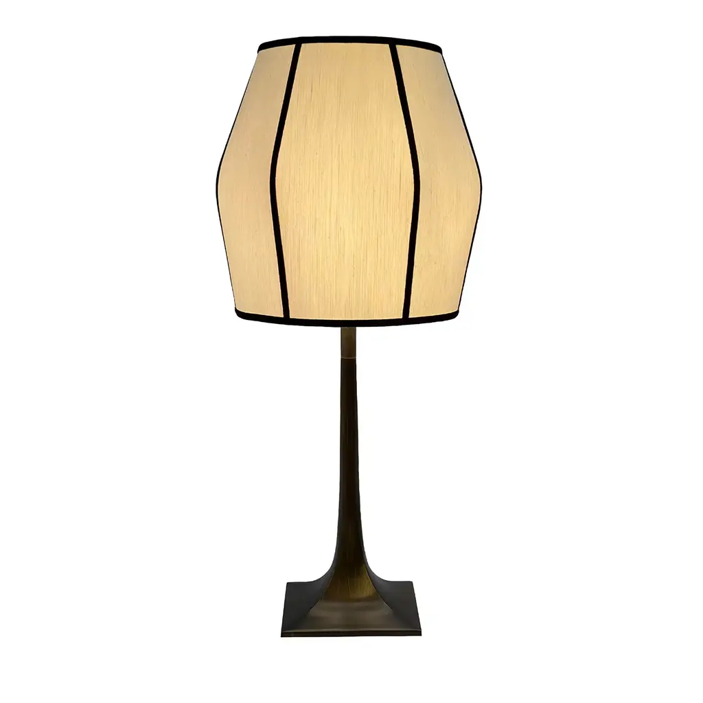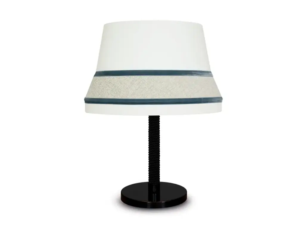Audrey is a table lamp.Light source:1 x 13W E27LED light bulbDimmer switch on the cable available on demand, compatible with dimmable LED light bulbs onlyIconic product inspired by the famous hat worn by Audrey Hepburn in the movie "Breakfast at Tiffany's". Designed for exclusive and elegant locations such as lobbies, boutiques, clubs, restaurants and also for classy residential environments. Audrey collection, composed by two table versions, the floor and the suspension versions, is designed as a true style exercise. There are three shades that join together: the cotton on the upper and lower part, san colour bouclé fabric on the central part and the new velvet trimmings, available in different colours. The stem is covered with a braided silk cord.