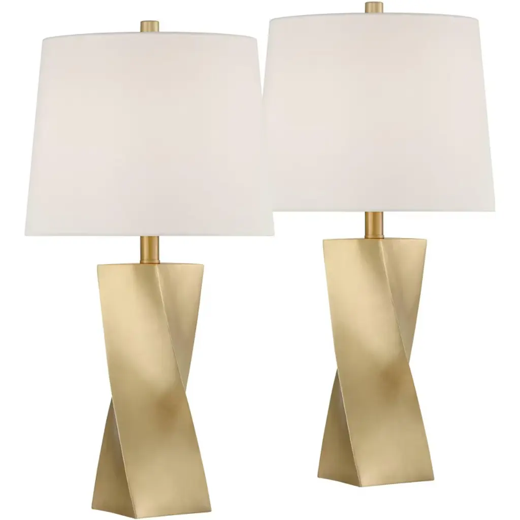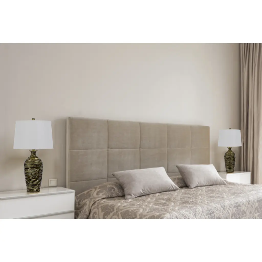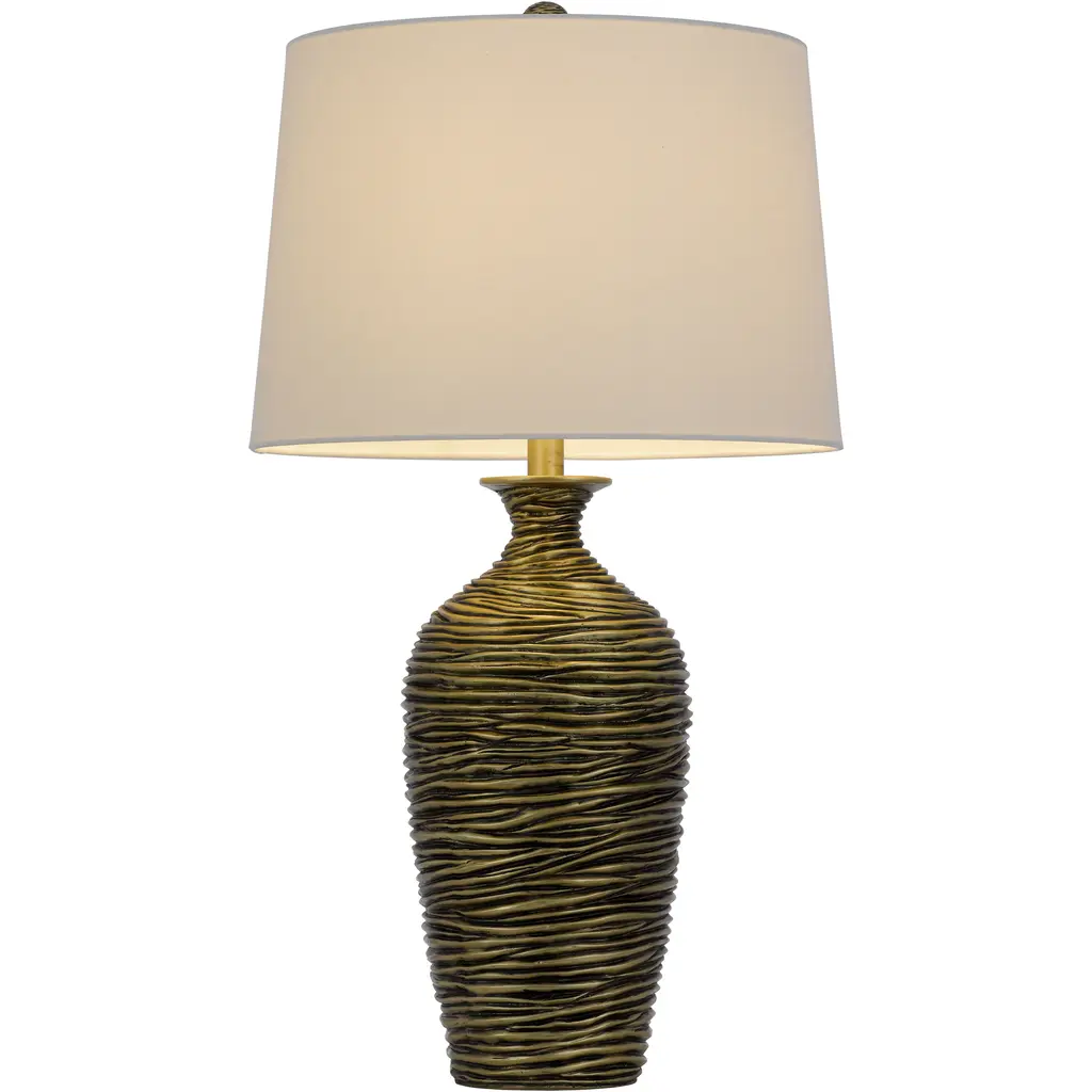 Update your style with this set of vase shaped table lamps. They feature a textured body with an antique bronze painted finish. Both lamps ship complete with matching shades and finials.