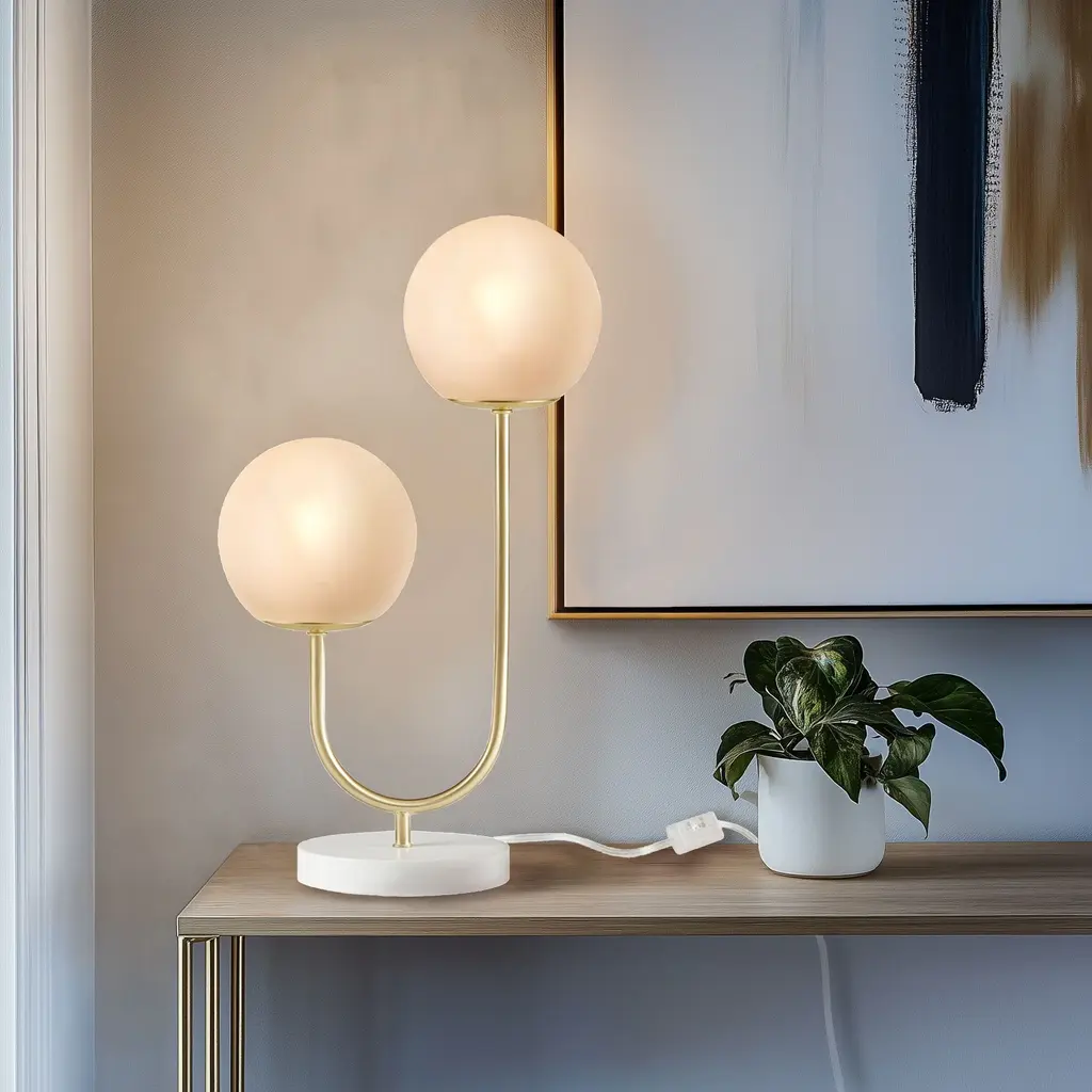 Aurora is a table lamp with structure and decorative parts in metal available in Ancient White, Yellow Sunrise, Baby Blue, Baby Pink and Cappuccino. Middle sphere with brushed light gold finish. Diffuser in white glass.Led bulbs: 1x14w - E27TRIACAurora is an eclectic and colorful collection. A multifaceted soul with a seductive retro allure, Its naming alludes to the light that takes over the sky just before sunrise, and the finishes recall the colors of early Italian industry. Available in every versions, it includes floor, table, ceiling, suspension and wall solutions.