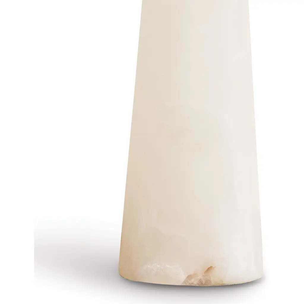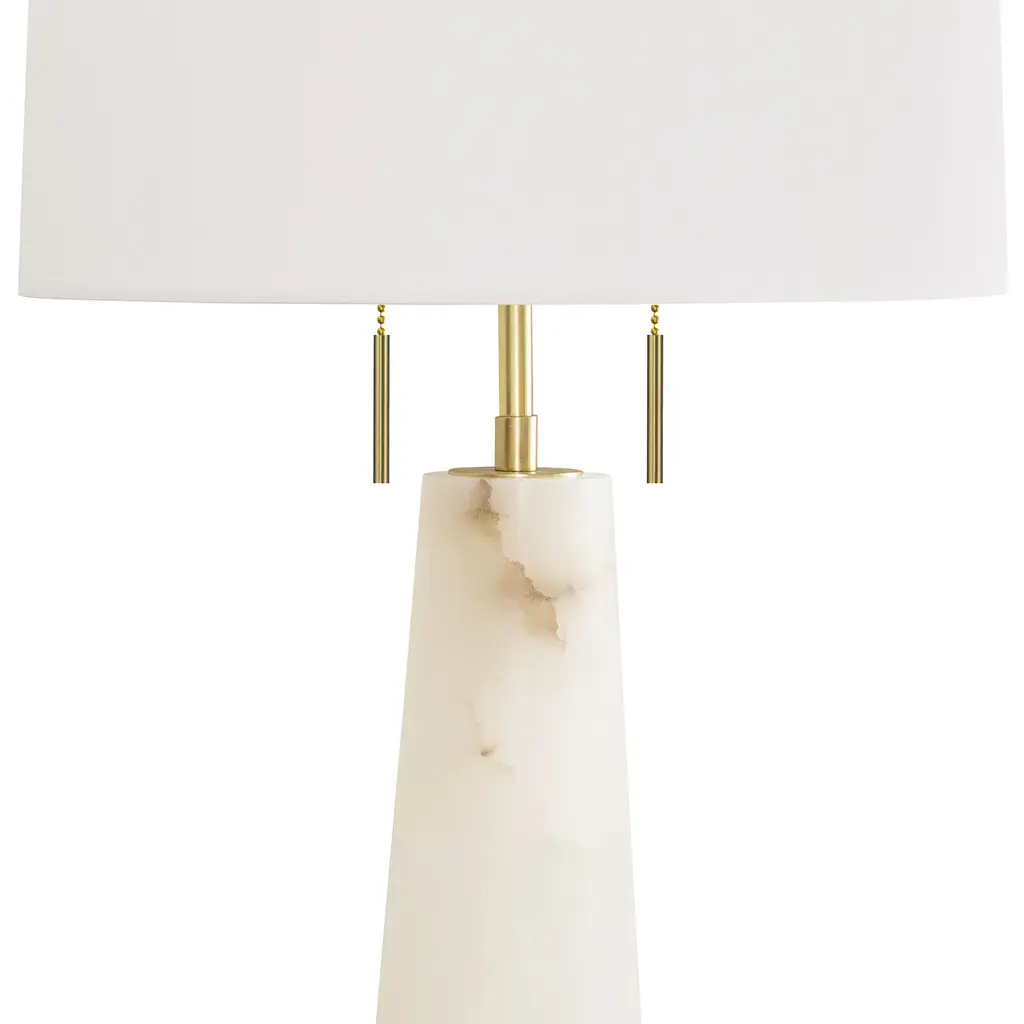 The Austen table lamp combines the classic look of alabaster stone with a modern, conical shape and natural brass finish, with sleek rectangular pulls. Place the Austen in a transitional bedroom, modern living area, or classic entryway for a bit of natural warmth.