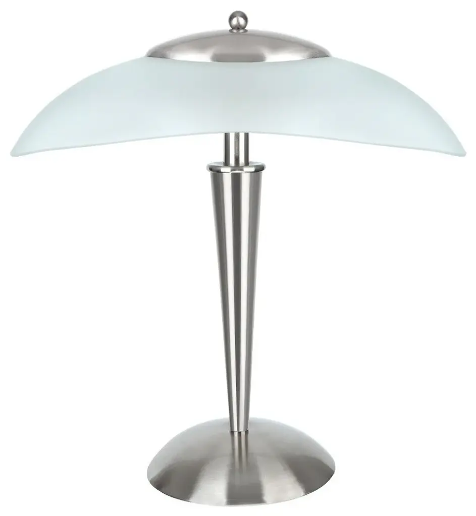 Bring a touch of contemporary class to your home decor with the Avalon two-light touch lamp. THis lamp is ideal for placing on your desk, night stand or end table, this two-tone satin nickel and chrome light features a modern frosted glass shade.Wattage: 40x2Number of Bulbs: 2Bulbs Included: YesUL Listed:Yes