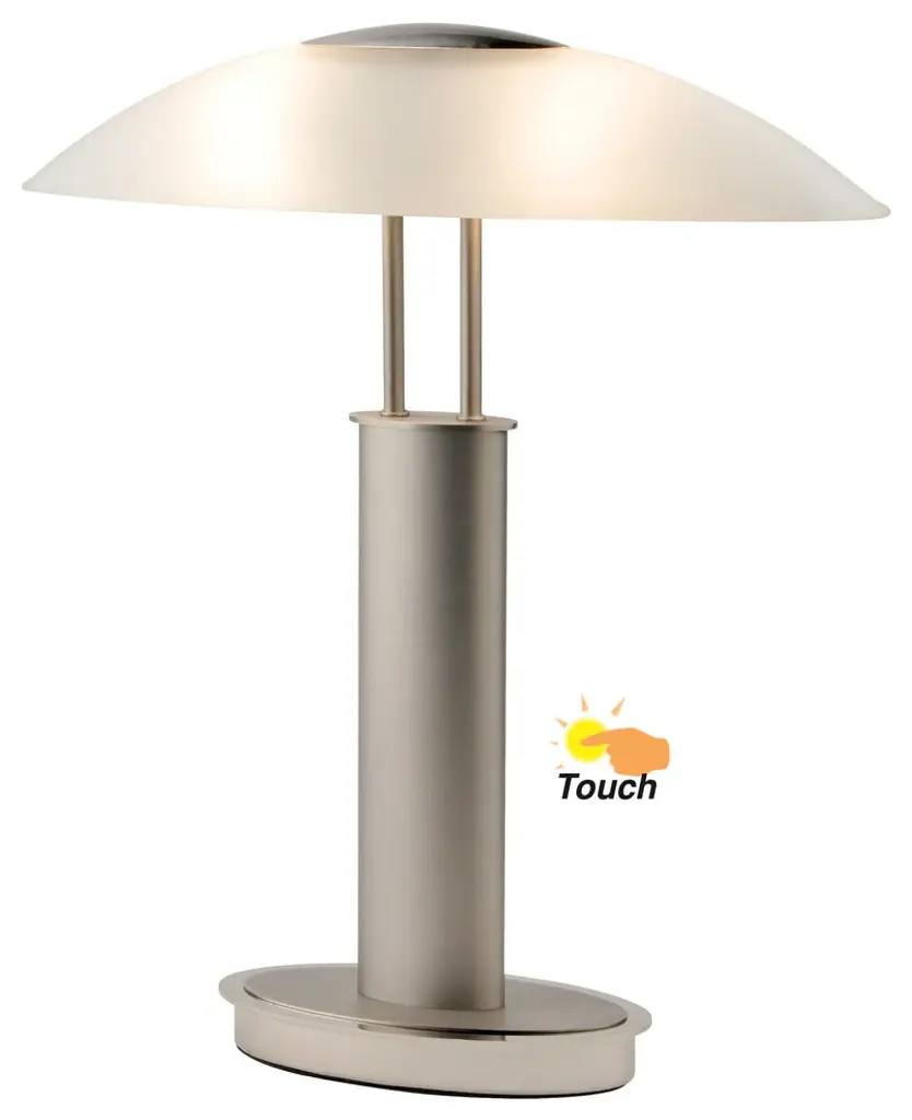Upgrade your living room or office with this Simple ,Modern LED Touch Desk Lamp from Artiva USA. The "Avalon Plus". With a touch of any metal part, which easily change to your lighting needs. Brighten up a dull office or create an entirely new Contemporary feels. With a 2-tone Chrome and Satin Nickel finish, you will think that you are looking at a piece of modern art and A perfect conversation piece.Number of LED Bulbs: 2 Bulbs Included: Yes ( 360 degree view angle exclusive LED filament bulbs)UL Listed: Yes3 Way touchBulbs Included: Yes