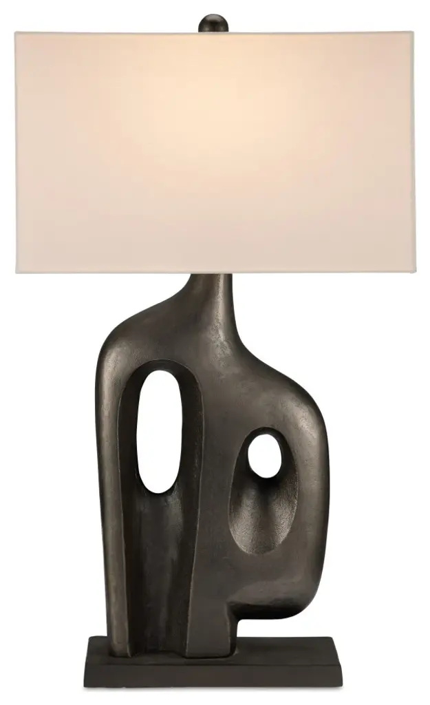 The Avant-Garde Table Lamp has a mid-century-modern inspired body, the flowing form leaning a bit toward brutalist in design. The lamp is made of aluminum in a graphite finish that brings the profile heft. The base and finial match the sculptural piece, and the bone linen shade is a pale contrasting element.Number of Bulbs: 1Type of Bulb: A StandardMax Bulb Wattage: 150Bulbs Included: Bulb Not Included