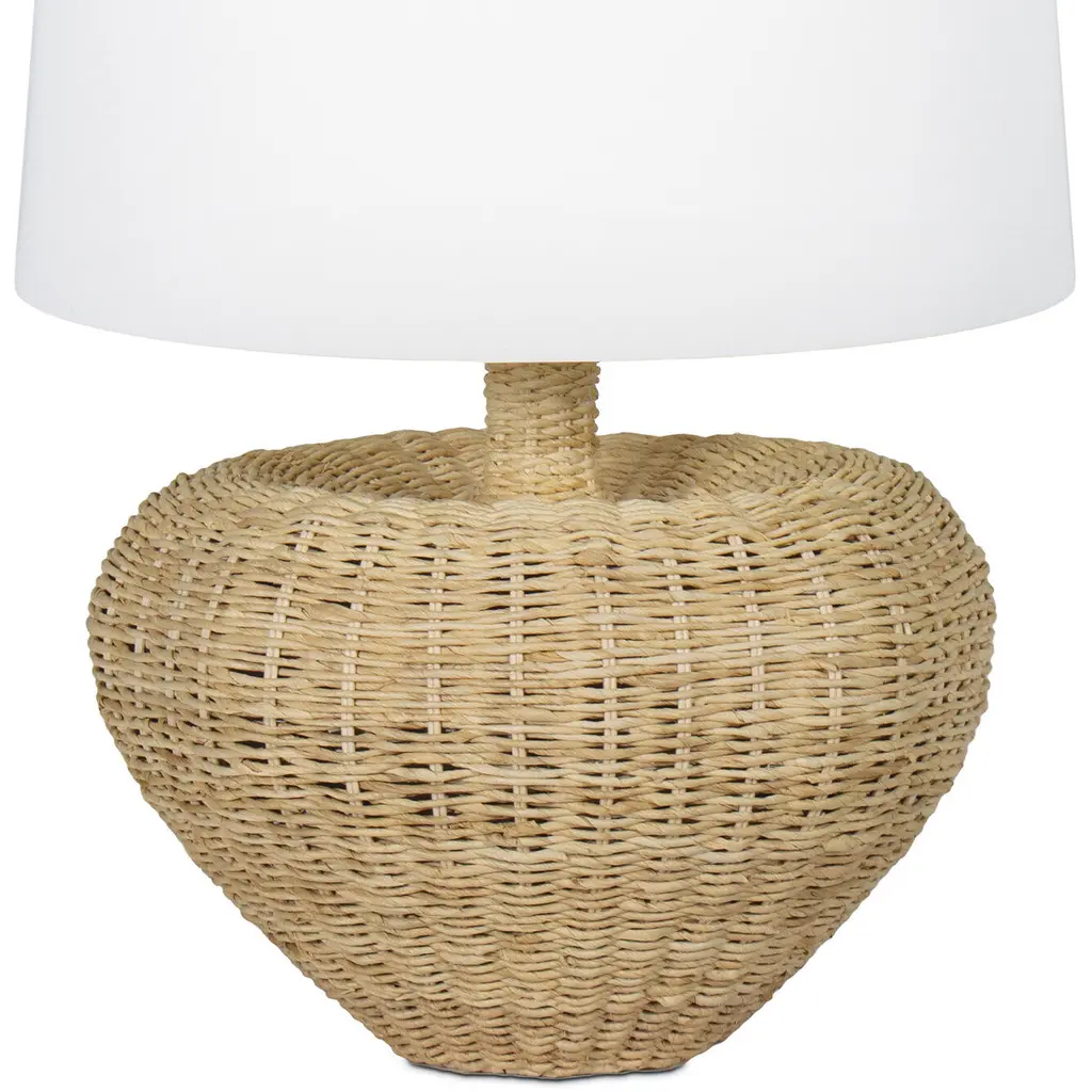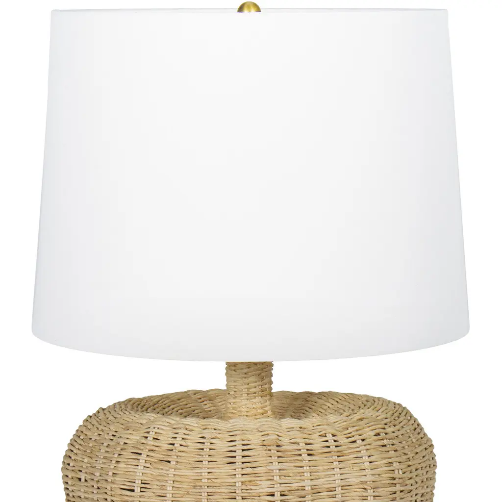 Illuminate your space with the Avery Lamp, showcasing a base with soft, heart-like curves and a sleek, elongated neck that supports a crisp white shade. Its intricately woven rattan body adds natural texture and warmth, making it ideal for coastal homes or any room in need of a sophisticated, neutral touch. The Avery Lamp blends artistry and elegance, offering a refined addition to your decor.