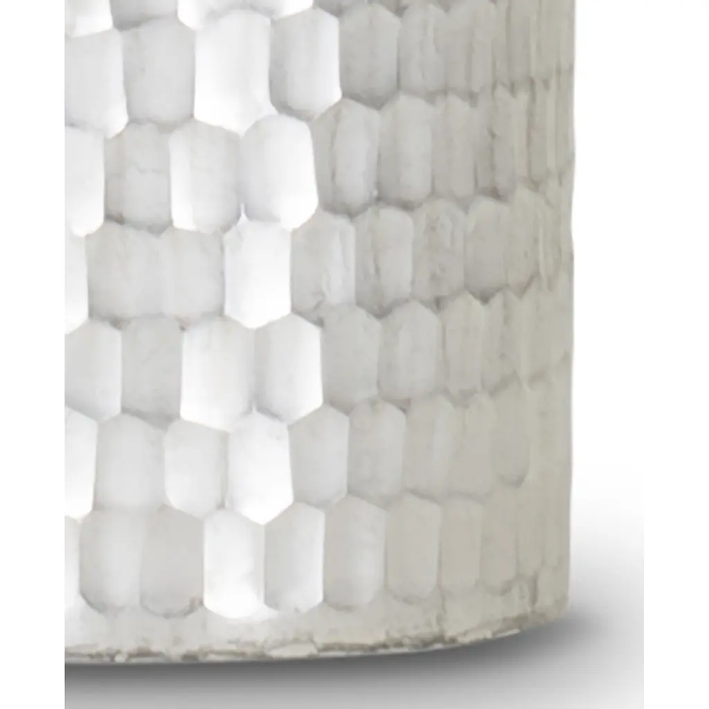 A Champagne hand-etched finish pops on the mouth-blown glass body of this table lamp. Each groove is accentuated by the sheen of the finish, which is further illuminated when the lamp is on. The off-white linen shade gives the piece a feel that would be right at home in a beachy cottage or soft modern loft.