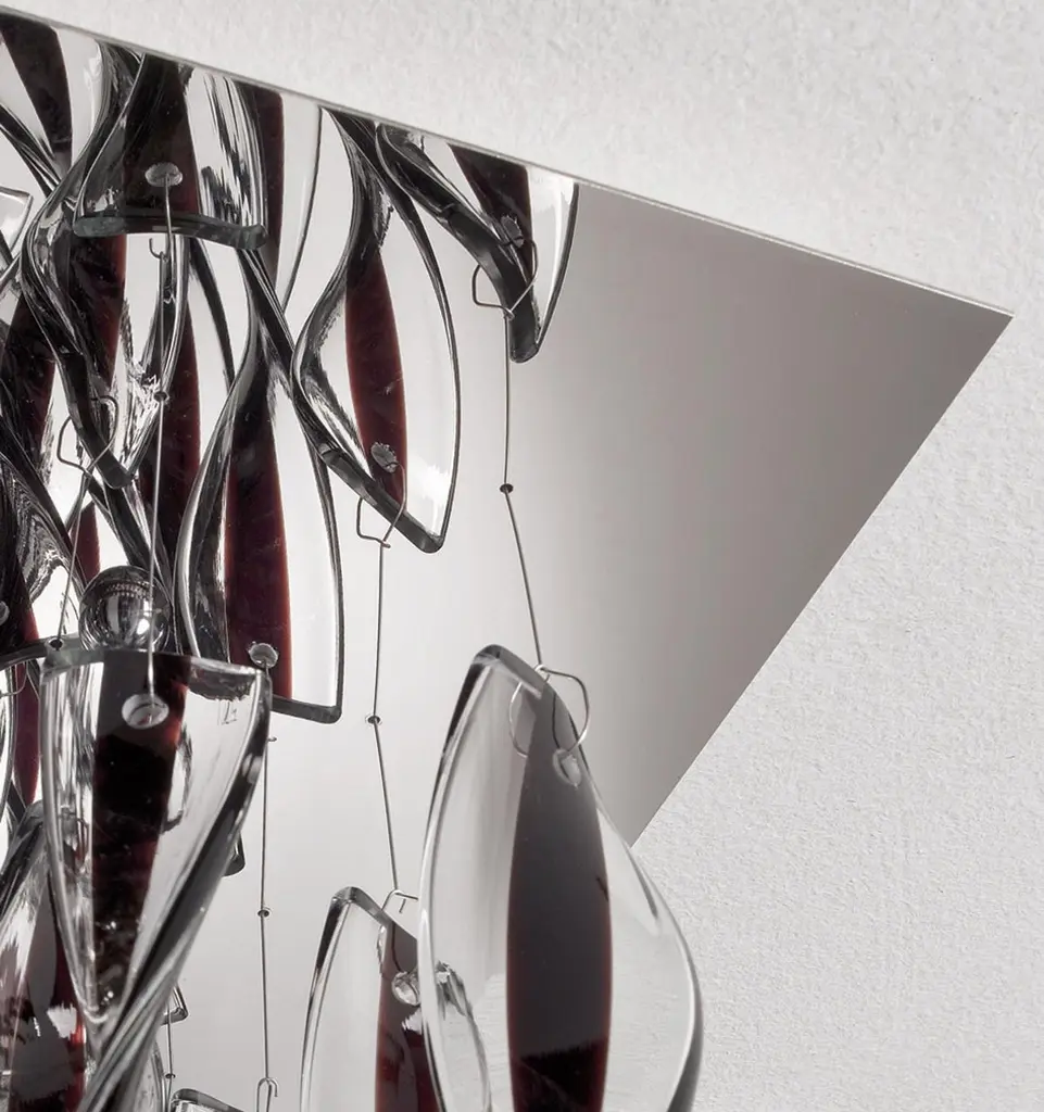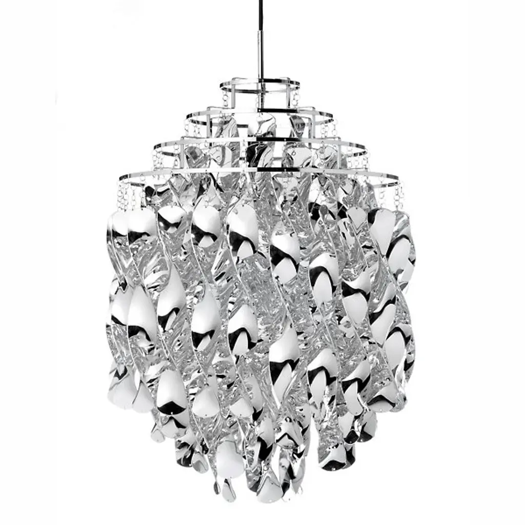 Axolight Avir Medium Ceiling Lamp in Chrome Steel Canopy and White by Manuel & Vanessa VivianWaves of light, dynamic reflections, uniqueness. The knowledge and craftsmanship of a master glassmaker express themselves in the shape of small glasses that together compose a fluid and aquatic image with a diffused glow.Culture and craftsmanship. Manuel Vivian, a long-experienced designer, is an unwitting guardian of the best in Italian artistic and manufacturing tradition. He is an expert in artisan production processes, in his creations he sets no limits to experimentation. Additional information:Materials: Steel canopyFinish: ChromeColor: WhiteE26 - Medium4 x Max 17W LED or4 x Max 26W fluoInstalls over 4-inch octagonal J-Box (support independently)Power supply 120 V ACSwitch mode: on-offDRY LOCATIONDimensions: 75 W x 75 D x 40 H cmAvailable in other color option: Red, crystal, teaAvailable in other size option: Large