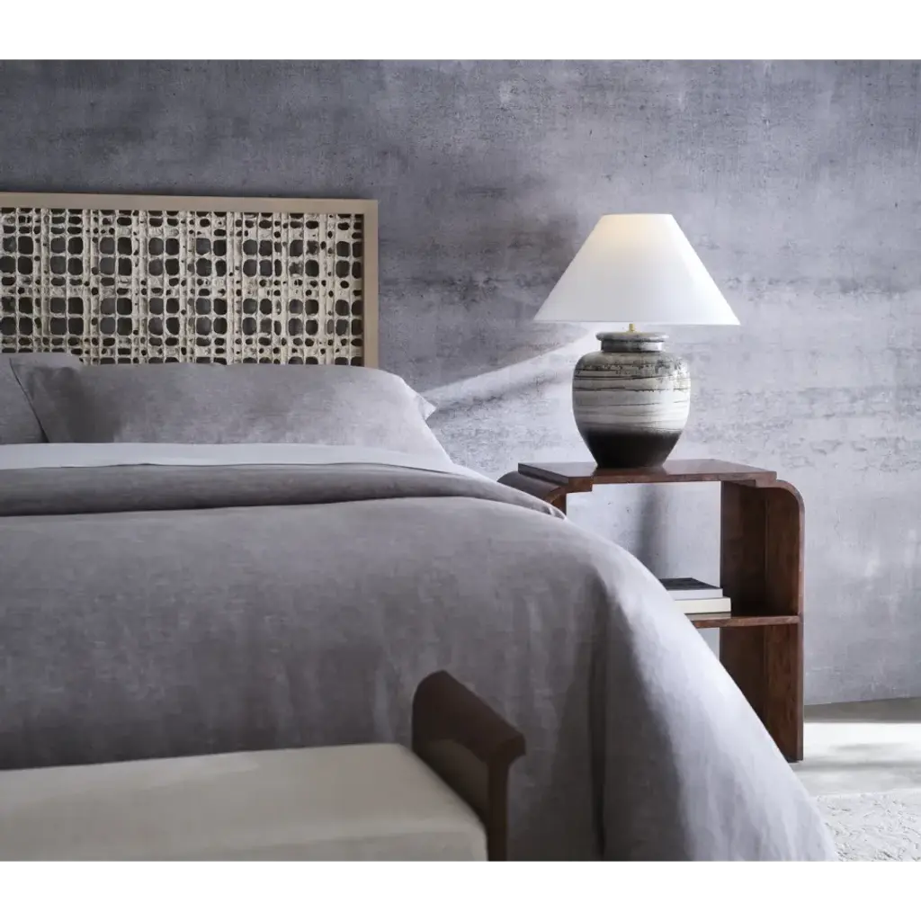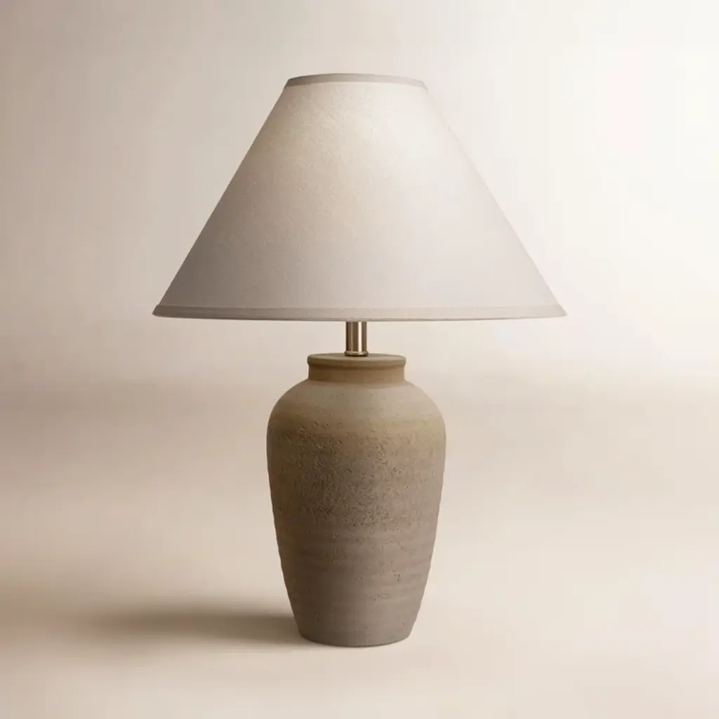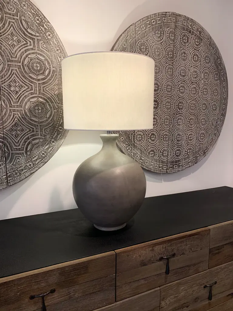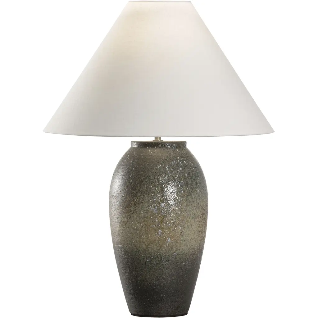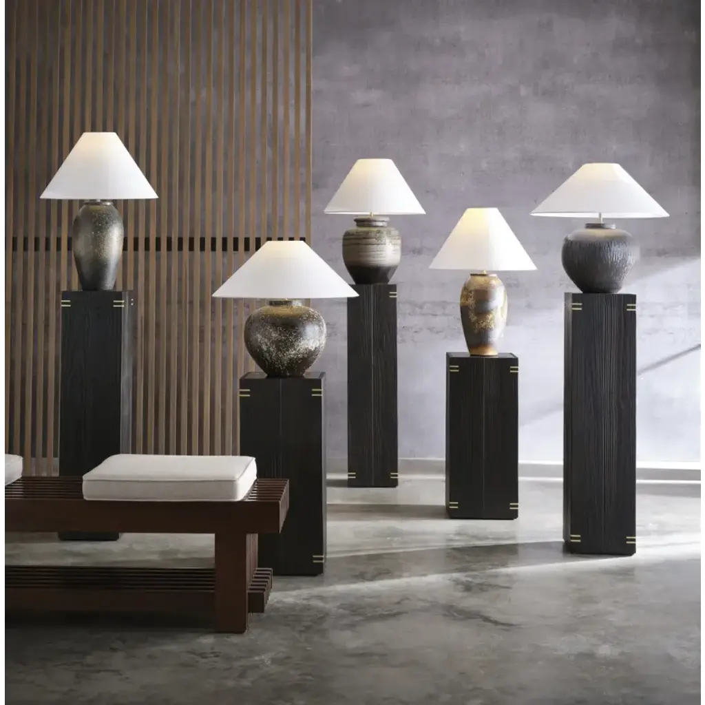 The Ayaka Table Lamp, part of the Shiga collection, is hand turned and finished in one of six ancient kilns in Japan. The elements from the soil of Shiga create this unique artful lamp completed with cloth wiring and topped with a refined rolled-edge linen shade. Made in Japan.