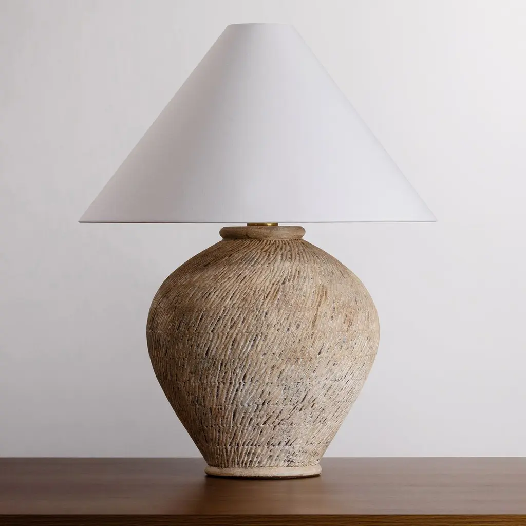 Aydin Ceramic Table Lamp, Natural Ancient Texture
