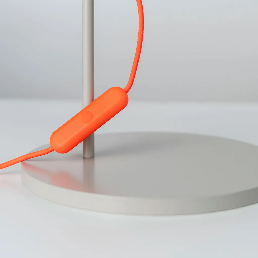 Emanating Midgard’s legacy of inventive design, the Ayno Grey Table Lamp elegantly intertwines functionality with contemporary aesthetics. The minimalist form of this lamp, coated in an understated grey, blends effortlessly into any decor, while its award-winning design ensures optimal lighting conditions. One distinctive characteristic of this lamp is its customizable power cord, available in two color options. Opt for the grey cord for a seamless, monochromatic look that echoes the lamp’s muted elegance. Alternatively, the neon orange cord option provides a striking contrast, injecting a vibrant pop of color that adds an exciting twist to this minimalist lamp. Whether your preference is for understated continuity or daring contrast, the Ayno Grey Table Lamp caters to diverse design sensibilities, all while upholding Midgard’s commitment to sustainable and adjustable lighting.