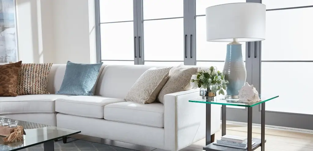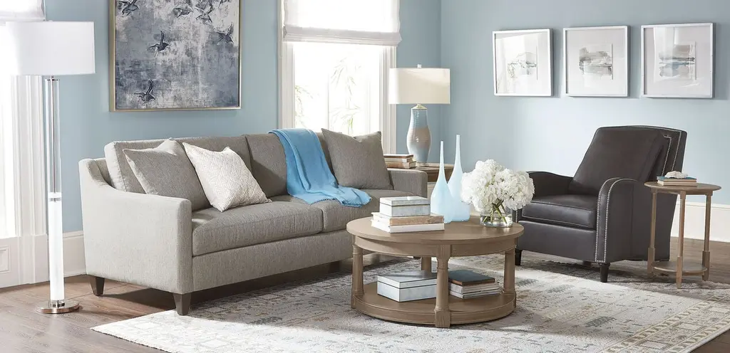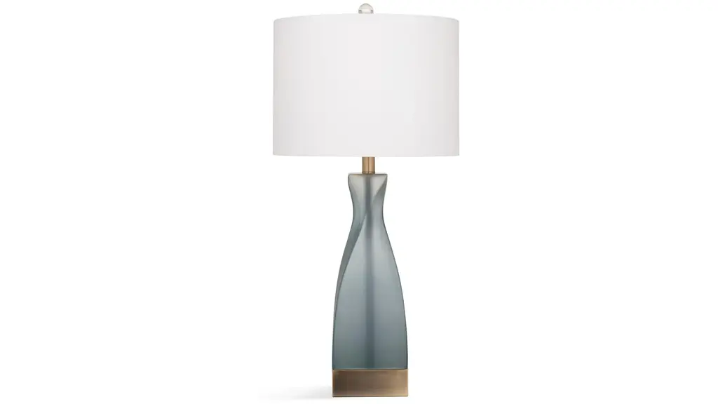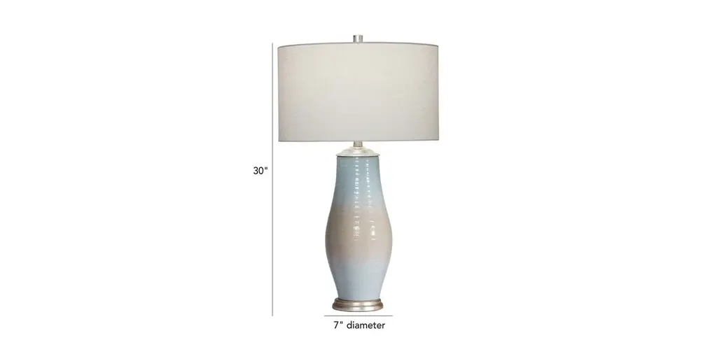 Add a special look to your everyday style with this taupe and blue ceramic table lamp. The classic silhouette of its base is hand-thrown from natural terracotta, then finished in a reactive glaze, creating a unique ombre-like blue and taupe coloration. A wooden table lamp base, hand-finished in a textured champagne foil patina, adds an elegant touch. The soothing style of this terracotta table lamp makes it a natural for coastal homes as well as any casually styled room.