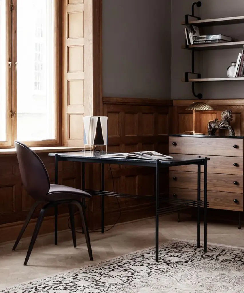 The B-4 Table Lamp by Greta Grossman was designed in 1945 and bears her whimsical and powerful signature style. With playful angles and geometric elements, the table lamp is characterized by its colourful and movable visors allowing light to diffuse softly around any table it stands on. The lamp fits effortlessly into almost any environment, adding a dash of American modernism panache to the room. The silhouette of the B-4 Table Lamp, with its stilt base and alternating colour panels, resembles some of Greta M. Grossman’s most iconic architecture more than any other design item from her career. Typically, her houses were perched high up on stilts with cantilevered decks and walls of glass to take in the magnificent hillside views of Southern California – and with a fanciful style the B-4 Table Lamp beautifully reflects her modernist design principles. Produced by Danish design purveyor and publisher, Gubi.