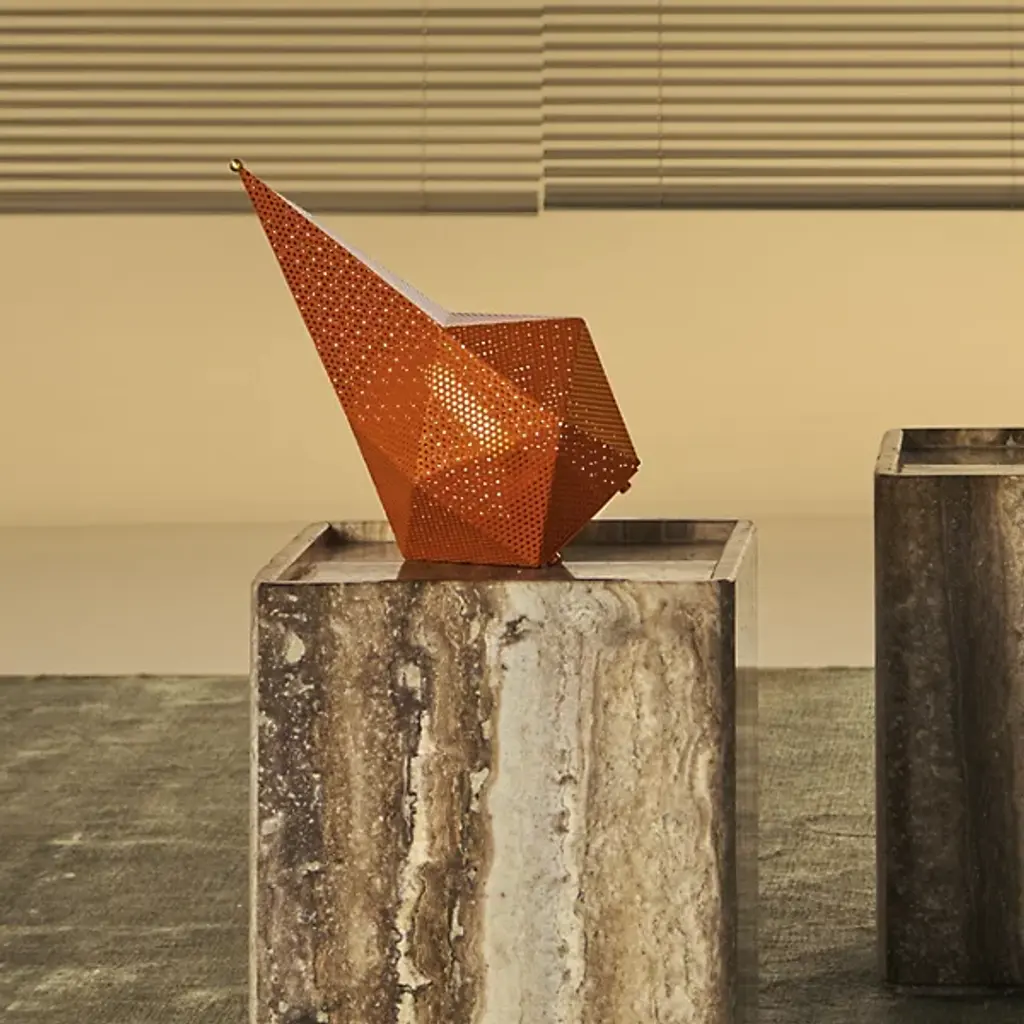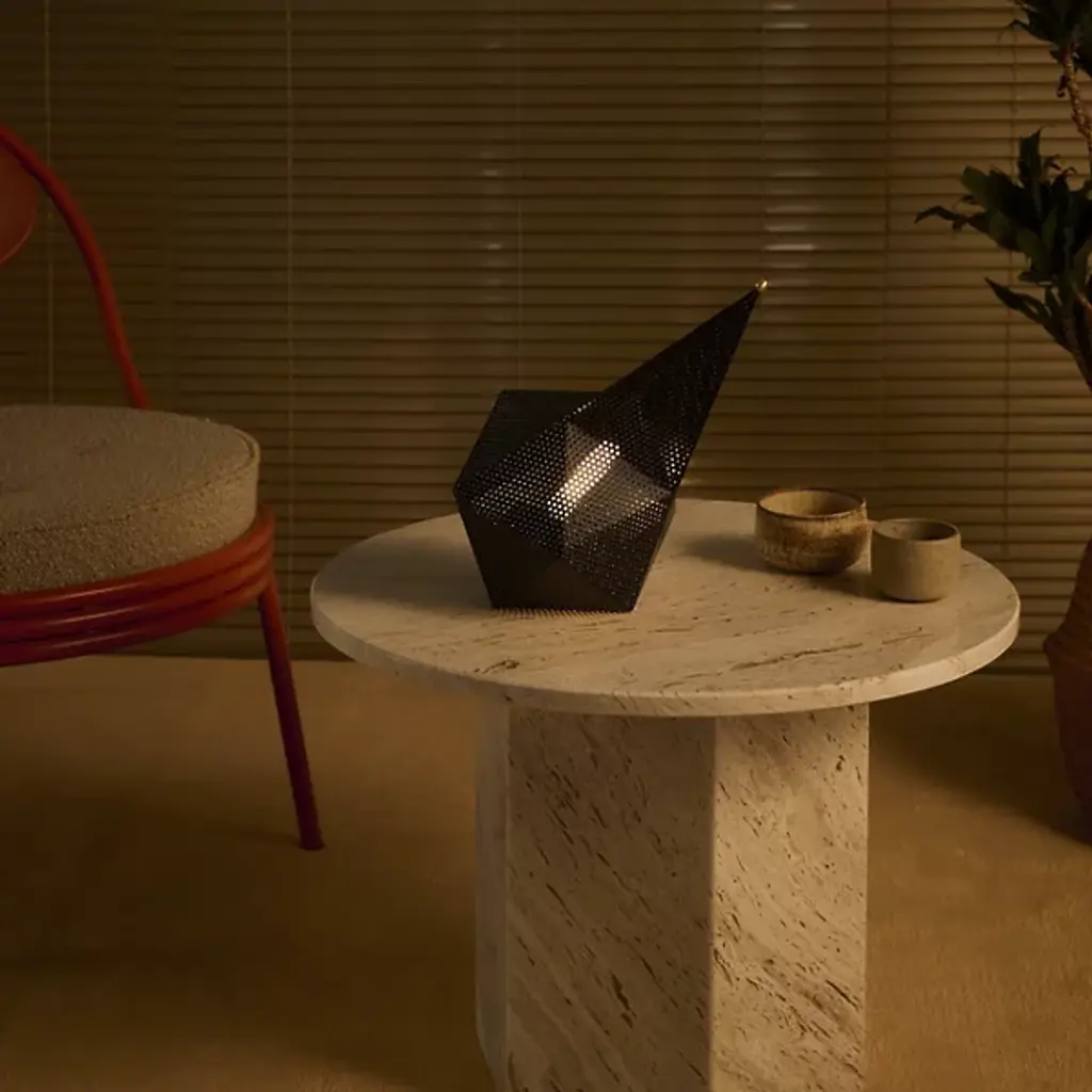 The Bagdad Rechargeable Table Lamp Lamp from GUBI brings a playful, sculptural touch to any setting. Originally designed by Mathieu Matégot in 1954, this reimagined edition scales down the size while adding modern versatility with a rechargeable design that charges easily via a USB-C for portable illumination anywhere. Its perforated metal structure, cubist form, and comet-like tail reflect Matégot’s bold design. A touch-activated dimmer with three brightness levels offers a dynamic blend of mid-century ingenuity and contemporary convenience.