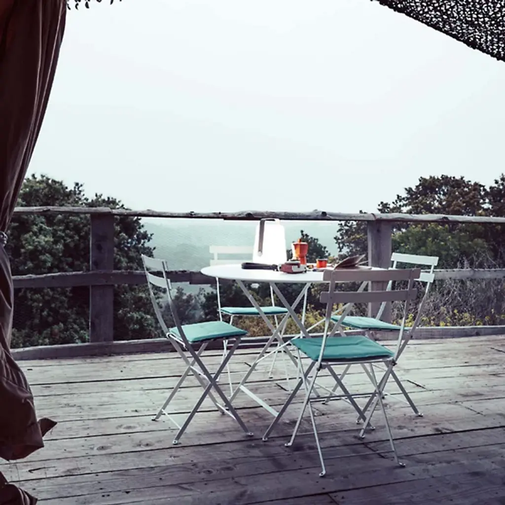 With the Fermob Balad Lamp, illumination and great design is promised wherever you want it to go. The cordless portable lamp features a dominant opal polyethylene shade with a powder-coated aluminum handle, and a rechargeable battery. At the bottom of the handle is a round button that you push to customize the illumination. In addition to incorporating a bit of Fermob’s refreshing color palette, the handle makes the Balad easy to carry and suspend. The Fermob Balad Lamp’s crisp and modern design allows the lamp to transition with ease from one area to the other, indoors or outdoors.