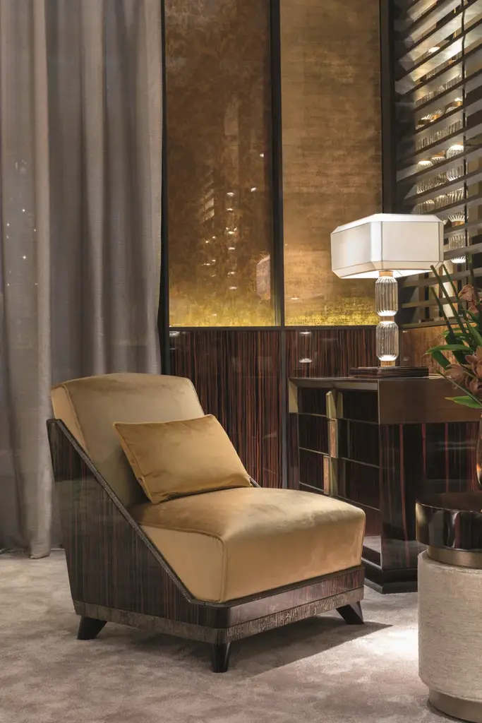 Ballet is a table lamp realized with pyrex transparent glass and bronzed or chromed frames. Decorative inserts in mosaic. Base in polished ebony and lampshade in ivory chinette. Top cover in opal methacrylate plate.