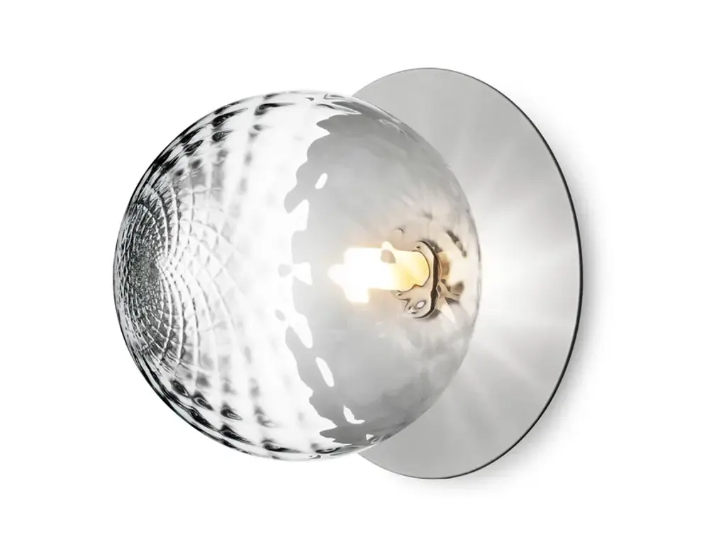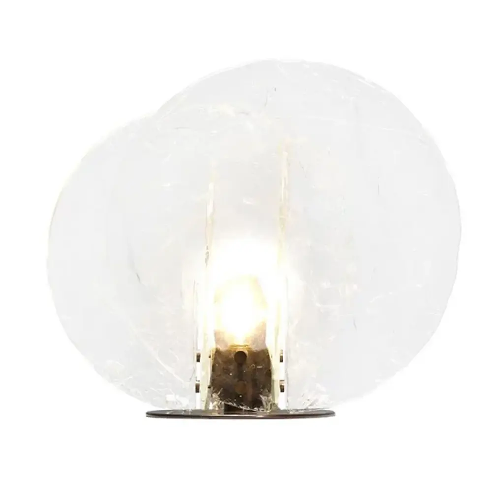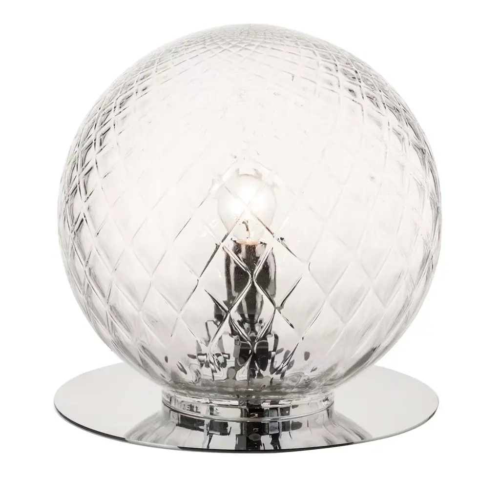 Balloton is a table lamp in hand-blown glass with the traditional balloton processing with a metal mold, for a cross relief effect. The latest re-edition features bright new elements, complex shapes and different uses. But it stays true to the Balloton technique, which lends a unique texture – pleasant to the eye and to the touch – to the glass surface: a rhomboid pattern etched with metal by the master glassblowers. The Balloton Lamp is available as a pendant light, a wall light and a table lamp.Colors:GreyCrystalLight source:1 x max 8W LED E14It seems soft, yet it is glass. This signature VENINI optical illusion is called Balloton: a unique process that recreates a quilted effect in glass. The “balloton” forming process is one of the most fascinating in the art of Murano glass making. In the most important phase of the process, the master glass maker has to blow the hot glass inside a special, thick metal mould before it solidifies. The mould creates the rhomboid shapes on the outer surface.