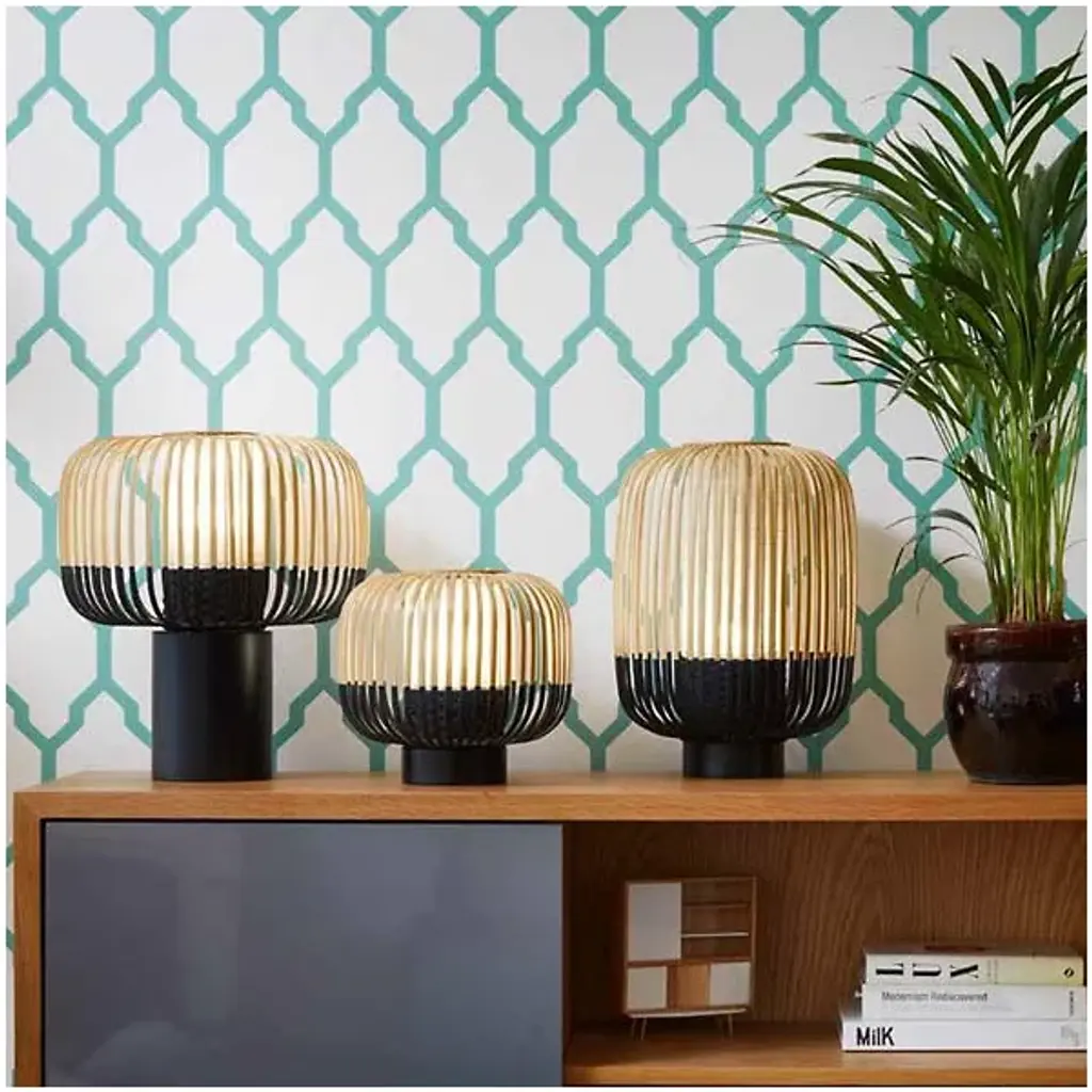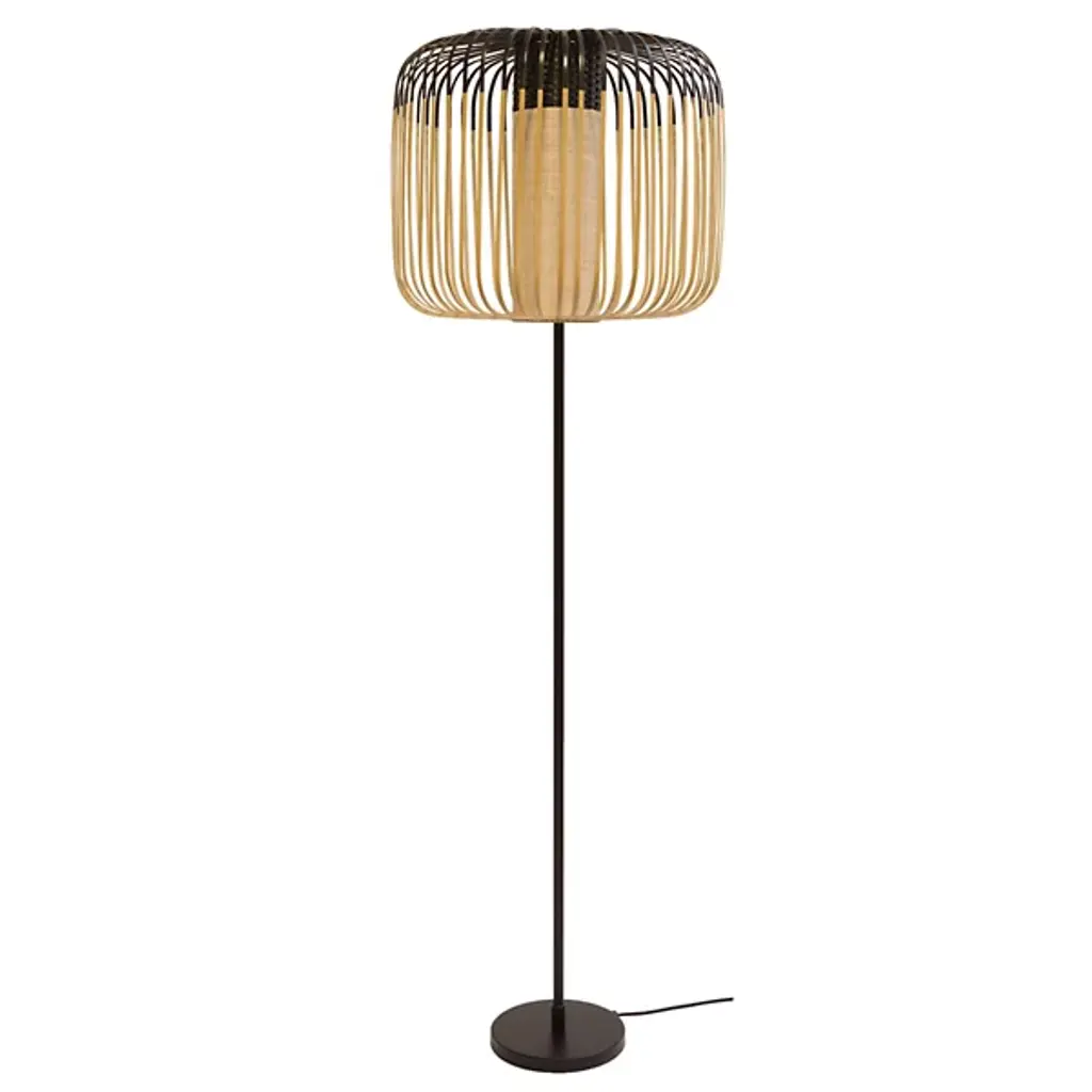 Natural materials and hand-painted accenting make the Bamboo Table Lamp by Forestier a lively addition to a modern home. From Israeli designer Arik Levy, this piece brings artisan-crafted style to a space through its lantern-inspired silhouette. Partly painted bamboo bars form a cage around a central diffuser and are set atop a cylindrical base in a matching finish. Its lamping is concealed within the woven fabric diffuser, emitting a pleasant glow that evokes the mood of a festive summer picnic.