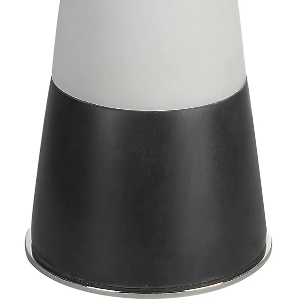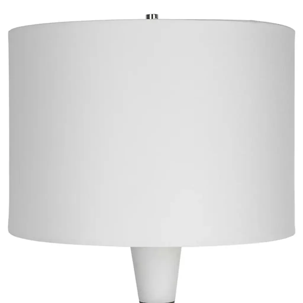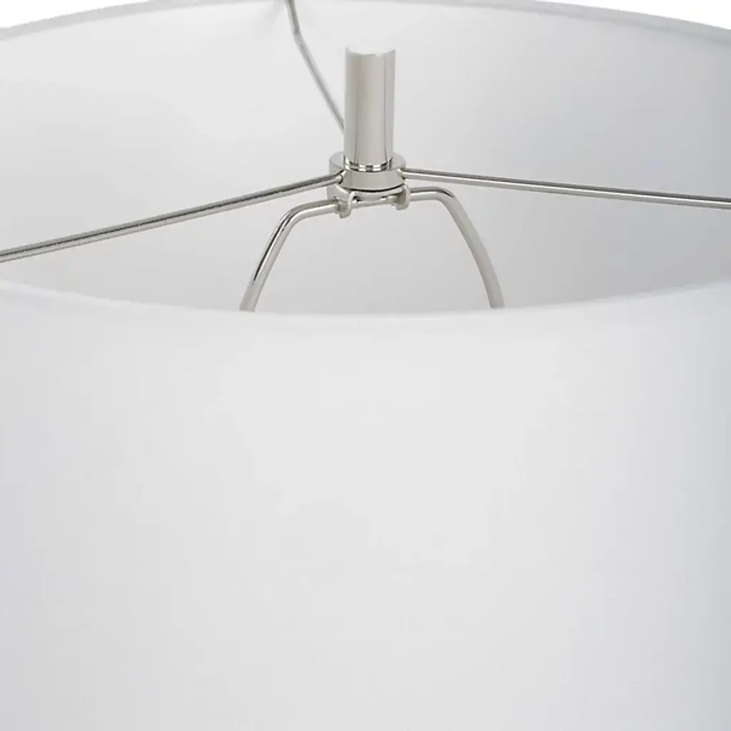 The Bandeau Table Lamp from Uttermost delights with a striking hourglass shape crafted from banded black and white composite stone that closely resembles Thassos marble. Designed by Carolyn Kinder, it uses polished nickel-finished iron details to add a welcome note of elegance, while a white linen drum shade completes the look. This lamp embodies a transitional style, blending classic and contemporary elements to create a sophisticated design that combines durability and visual appeal.