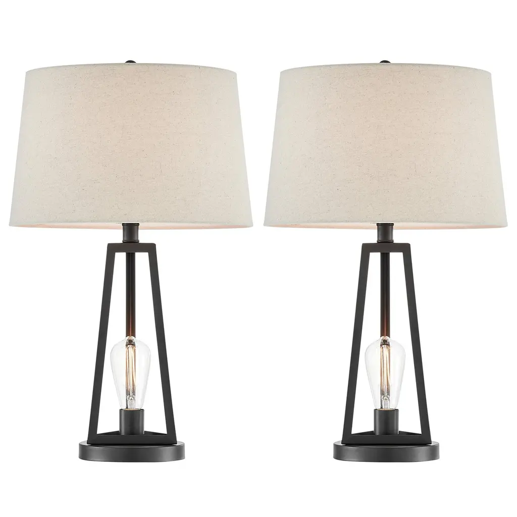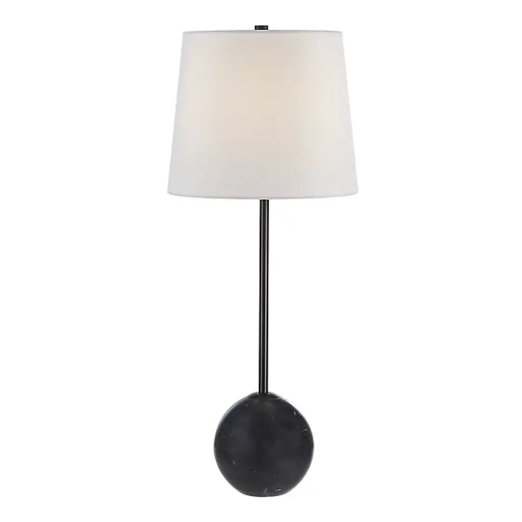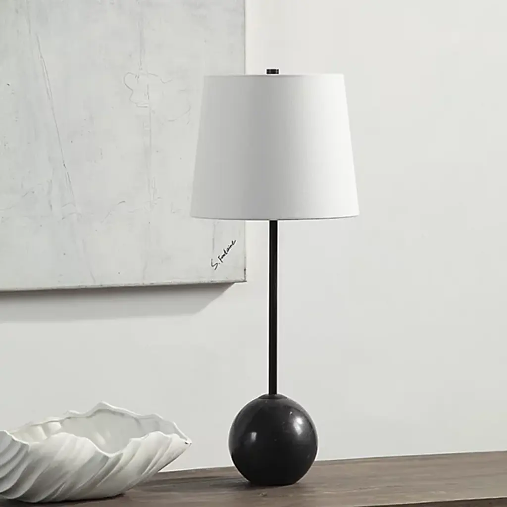 The Bangor Table Lamp, Set of 2 from Renwil an inspired addition to any modern home. Each lamp features a rounded marble base with clean lines that enhance contemporary and retro-modern decor. The sophisticated tapered linen shade is elevated by a slim upright and diffuses light for a warm, inviting glow, while the 25-inch height makes them ideal for bedside or accent tables. These lamps offer versatile lighting options with dimmer sockets, blending transitional style with a modern design to personalize your space, transmitting a warm light wash in all directions.