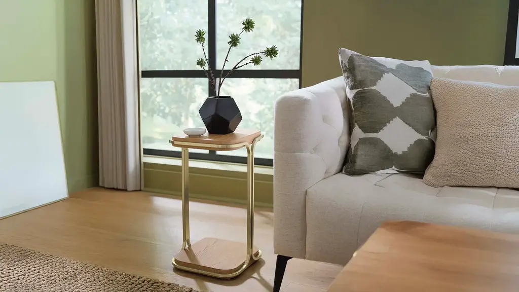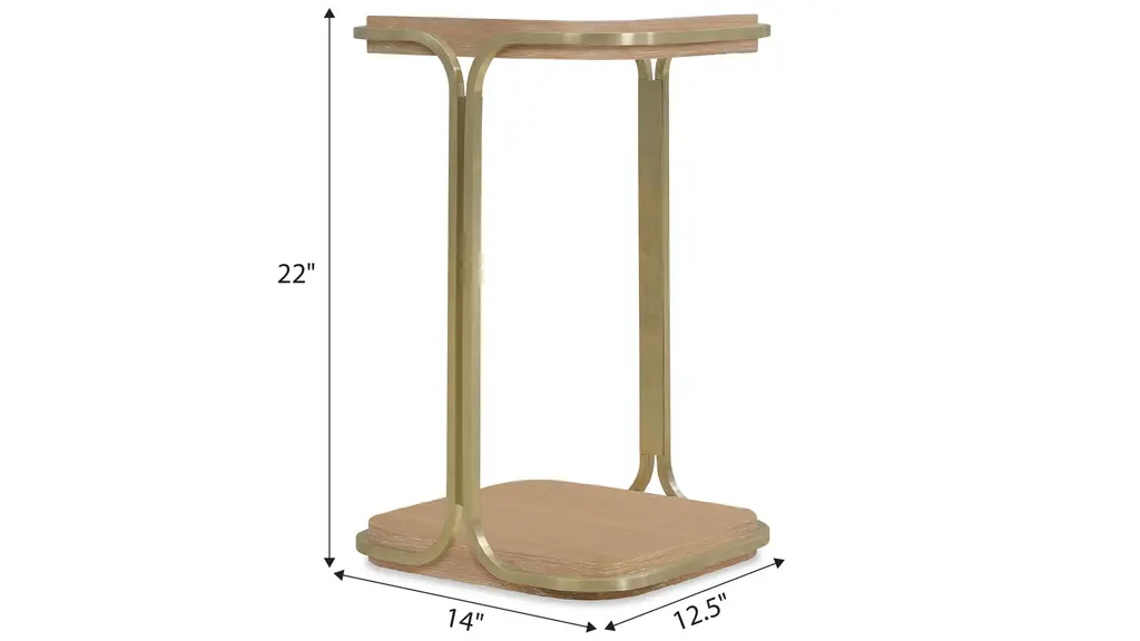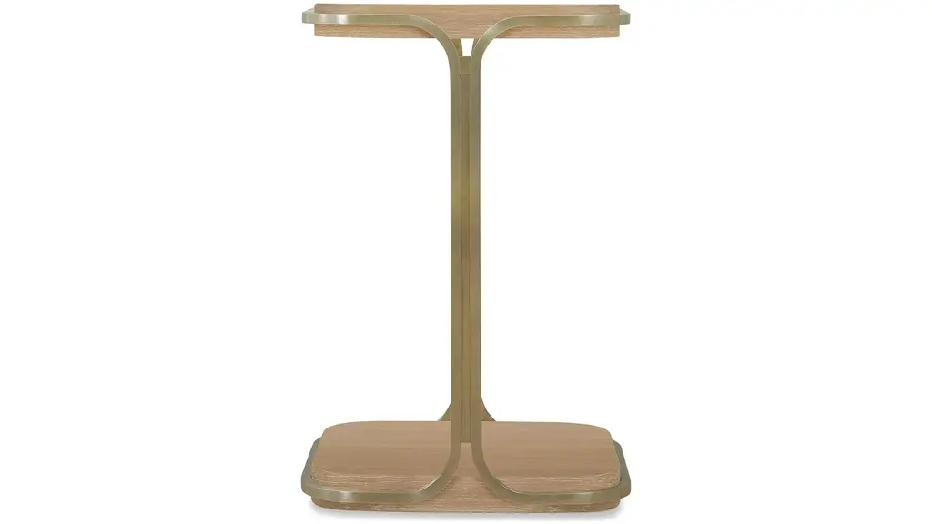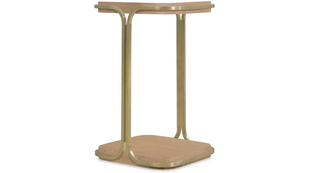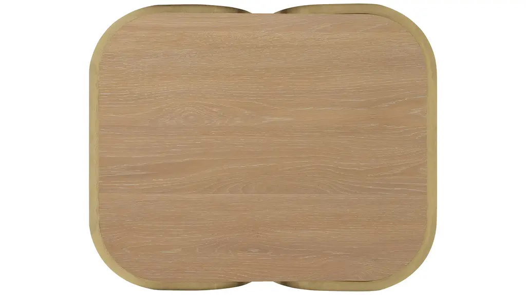 The Banyon Bay Accent Table is a versatile, compact piece that blends modern lines with natural textures. Featuring white oak solids, oak veneers, and metal, the table is finished in a light Desert Oak tone with brushed brass stainless steel legs. The multi-step finishing process includes wire-brushing and cerusing for enhanced texture. This table's small footprint makes it ideal for tight spaces, while its eclectic design fits perfectly into urban, coastal, or mountain settings. With its convenient size and rectangle shape, it's a stylish addition to any living room. Perfect for holding drinks, lamps, or decorative items, it combines function and style effortlessly.