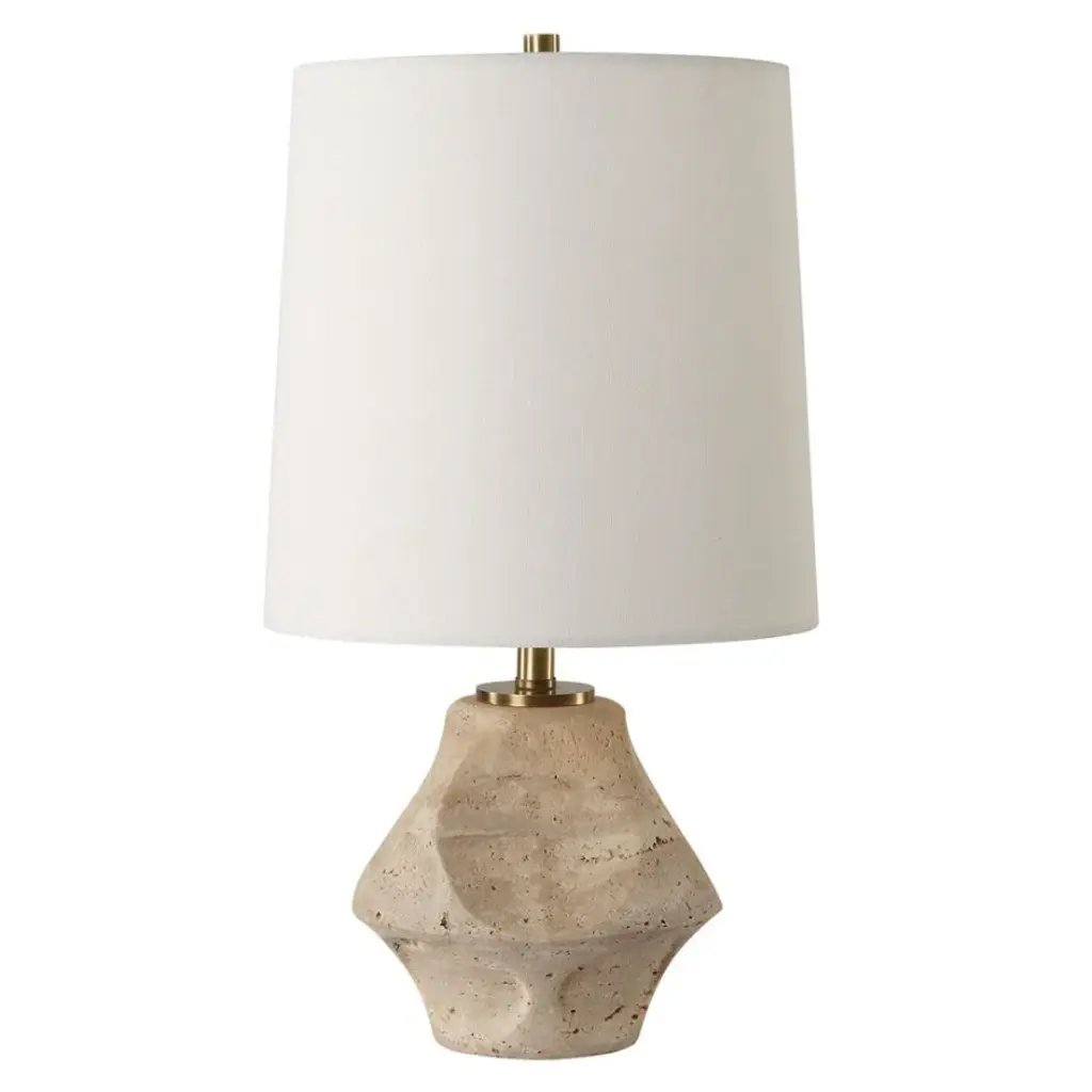Braque Medium Debossed Table Lamp in Shellish Gray with Linen Shade