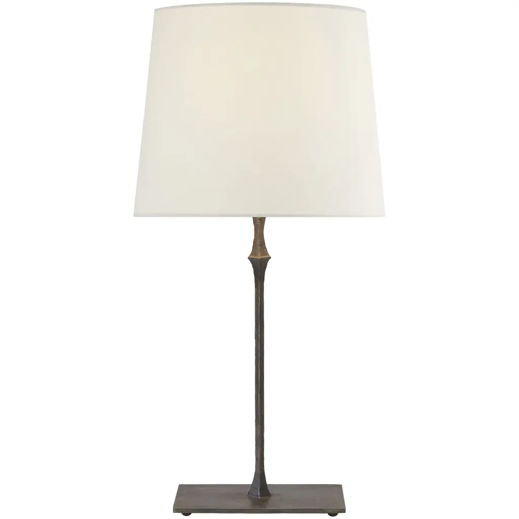 Oscar Medium Sculpted Table Lamp in Aged Iron with Linen Shade