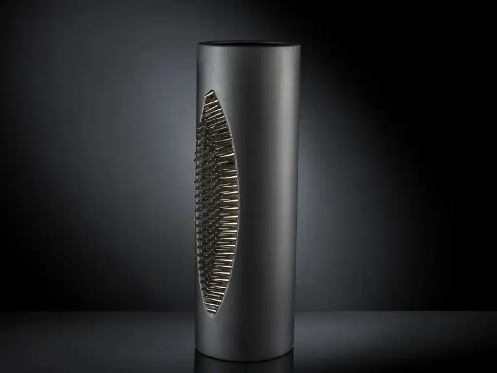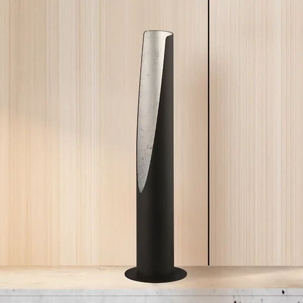 A unique, simple display, the Barbotto Table Lamp from Eglo brings a soothing, enchanting quality to the home. A thin, flat base upholds a column-shaped body with a deep, yet gentle curve cut out of it, precisely sliced for enhanced comfort. An energy-efficient LED bulb is tucked into the bottom, gently locked into place, spilling a soothing glow up and out of the column. The metallic interior is brought to life, shining brilliant, intricate details as the light passes through.